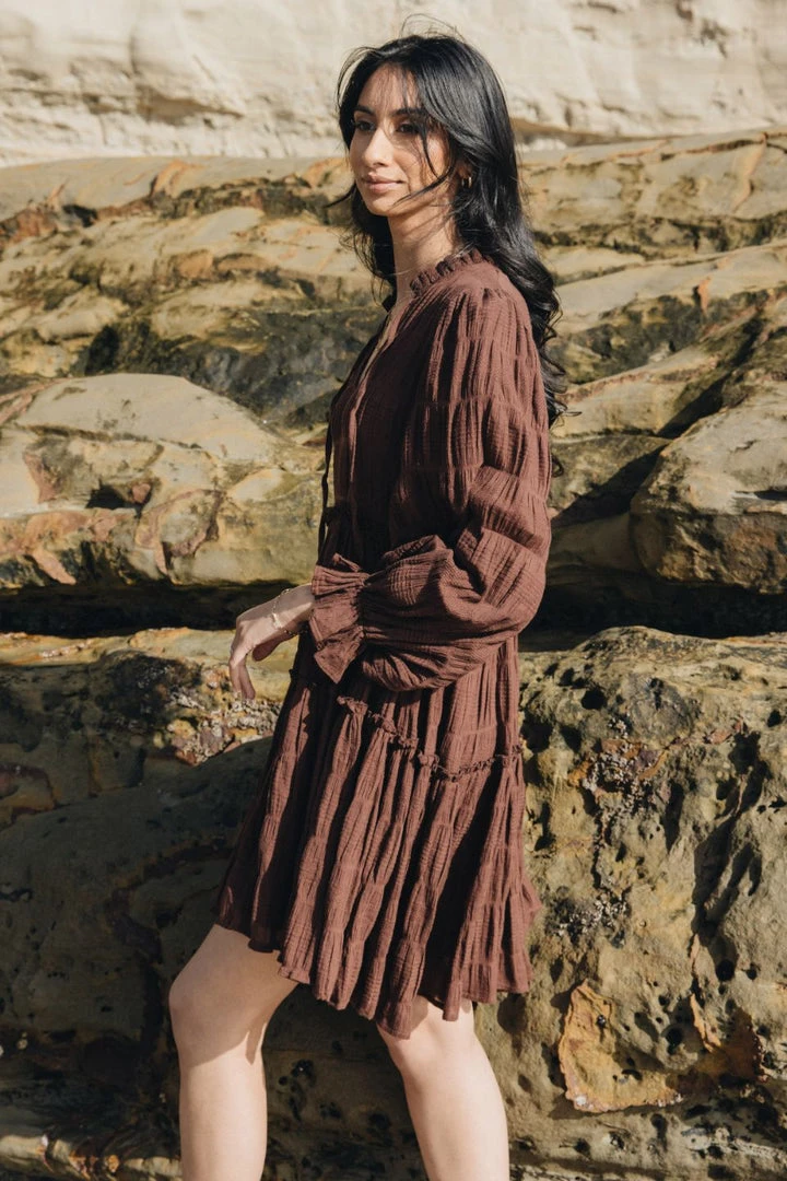 Feel effortlessly stunning at that next party or event in our Billie Dress! This romantic number features floaty long sleeves and a gorgeous V neckline. Pair this mini dress with heeled boots or go for a more casual look with some sneakers.Â
