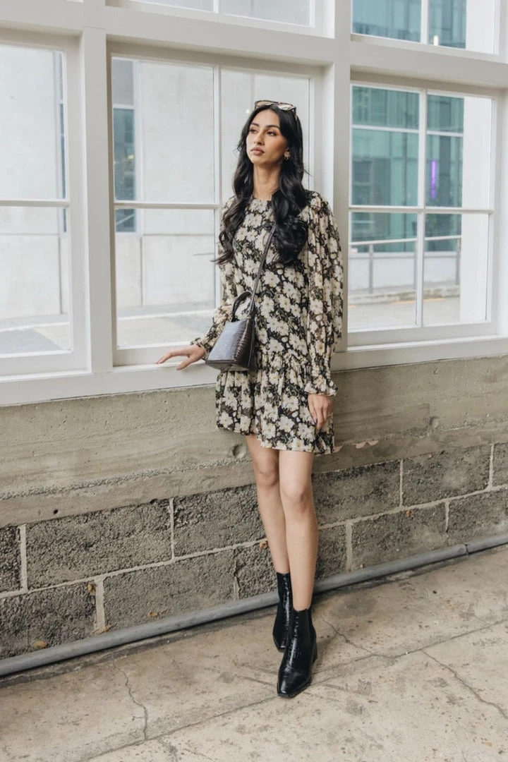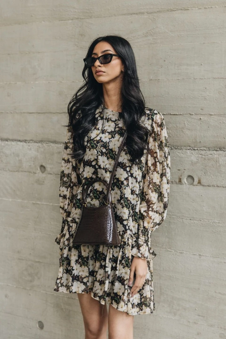 Have a feminine chic moment in our Bria dress from Ivy + Jack! This pretty mini features a high neckline, cuffed long sleeves and a dropped waist with frill detailing. It’s the perfect piece for those upcoming day events or can be paired with boots and a blazer for an evening look.