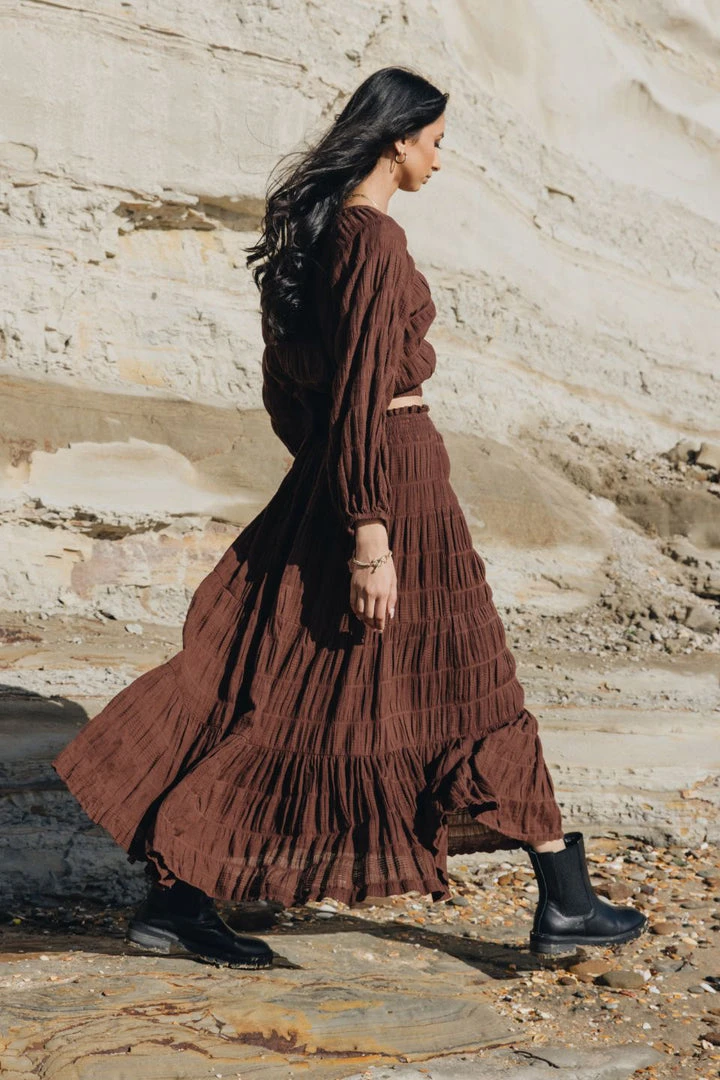 The Charming skirt is a must-have staple in your wardrobe! Make a statement in this stunning cocoa-coloured maxi, perfect for every occasion.