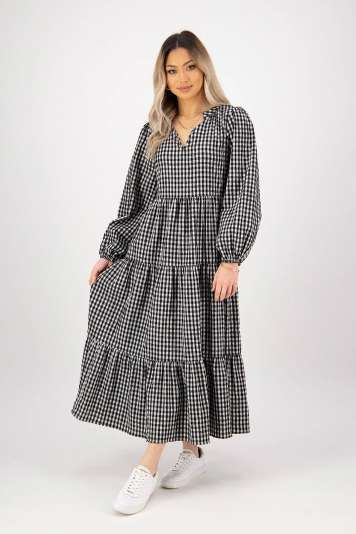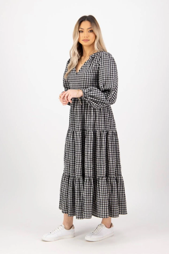 We are in love with the Kendall black check midi dress by Ivy + Jack featuring a stunning V neckline and long blouson sleeves. Pair this dress with heels for a night out or go for a more casual look with your favourite sneakers.