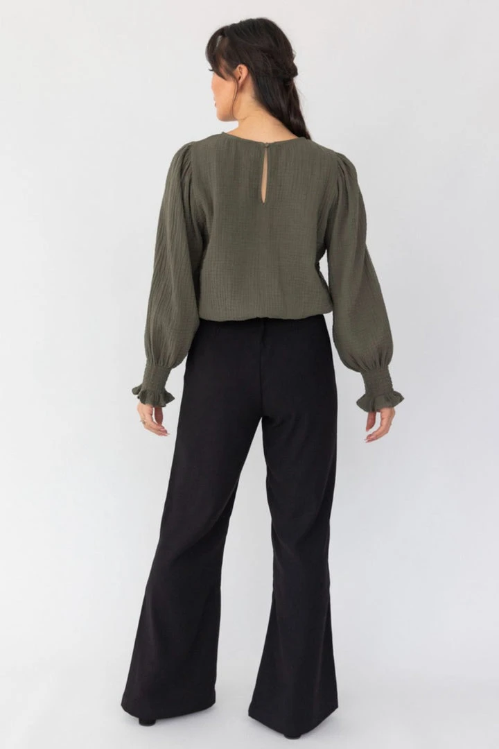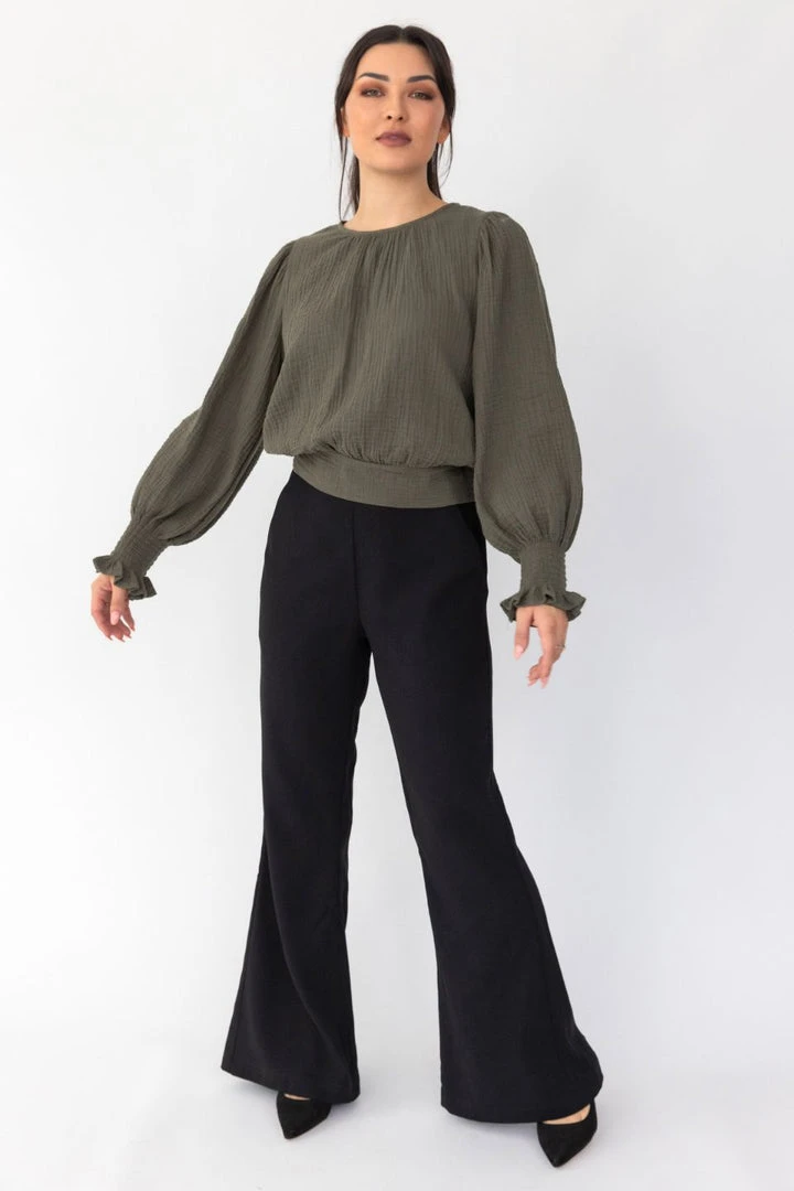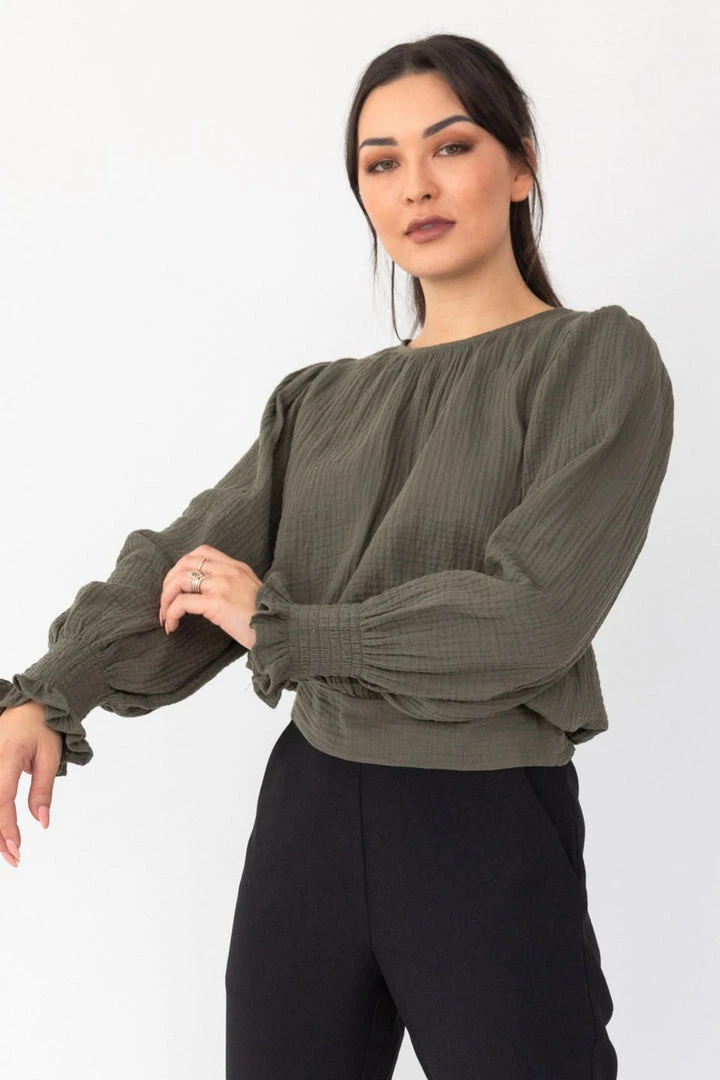 Wear the Grace blouse all season long! This versatile piece can be taken from day to evening thanks to its gorgeous balloon sleeves and stunning deep khaki colour.