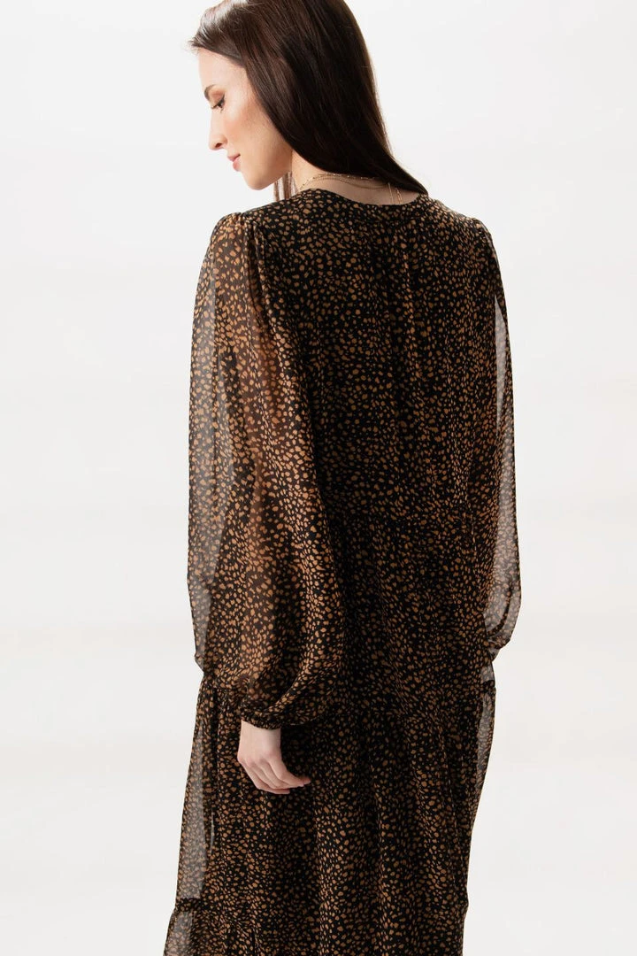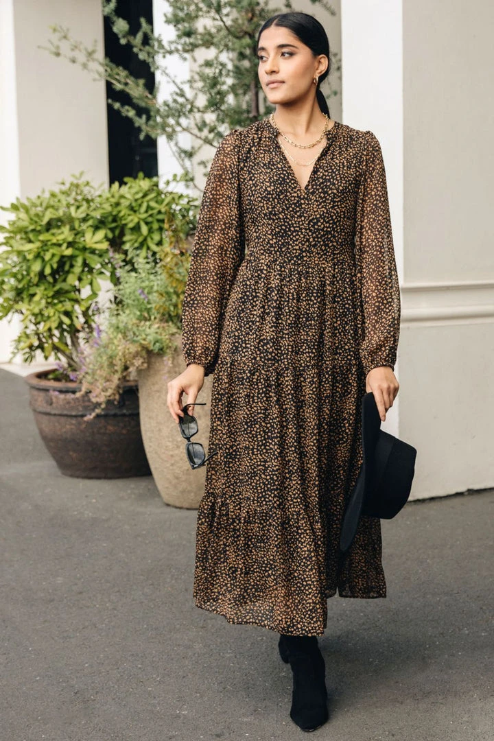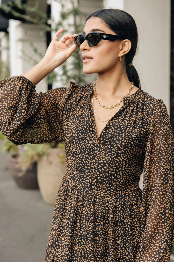 We are in love with the Kendall black leopard midi dress by Ivy + Jack featuring a stunning V neckline and long blouson sleeves. Pair this dress with heels for a night out or go for a more casual look with your favourite sneakers.