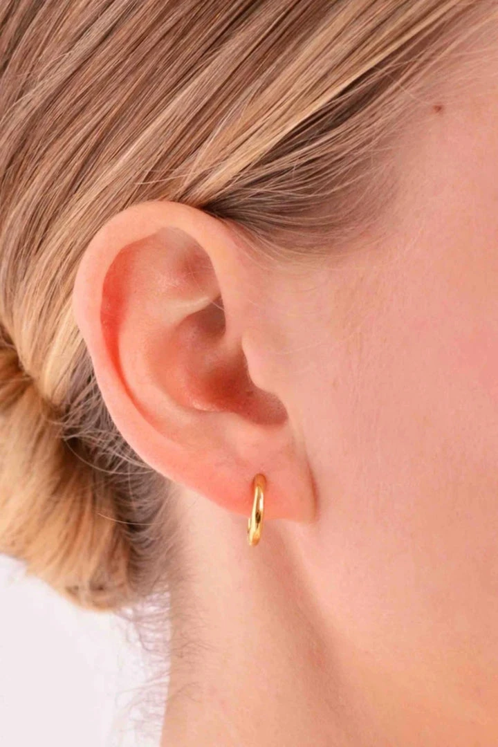 The Linda Tahija Classic Huggie Earrings are also available in Sterling Silver.