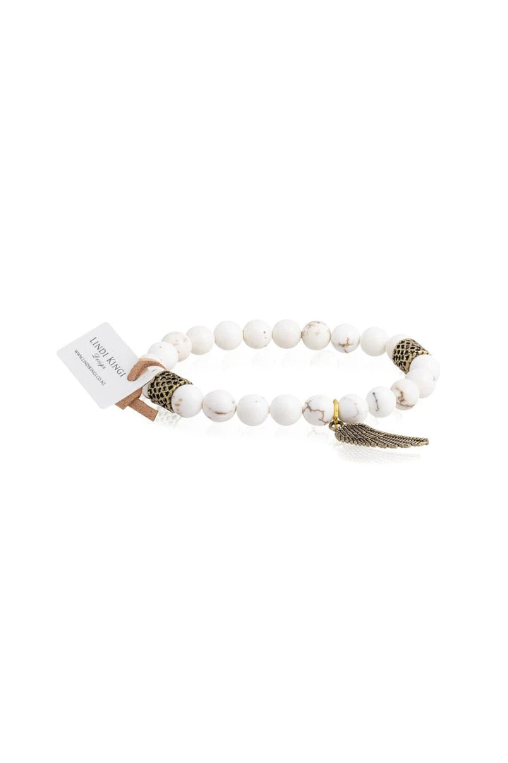 These gorgeous Beaded Bracelets from Lindi Kingi Design are a must have. The Cream and Gold Howlite bracelet with a cute charm looks great on its own, or wear as part of a stack. The perfect gift for your bestie, or even your ma, or better yet, as a gift to yourself… Girl – treat yo self!