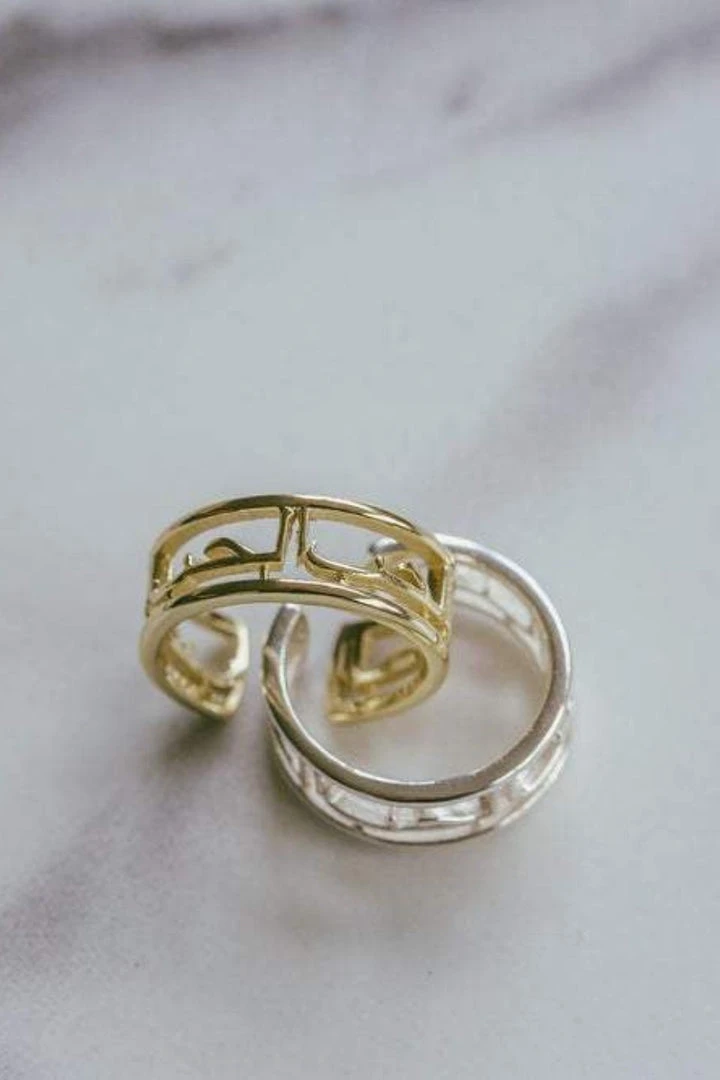 This platinum Love Ring has the word ‘LOVE’ written in Arabic around the ring.