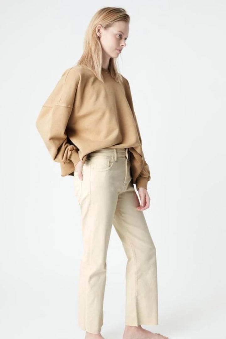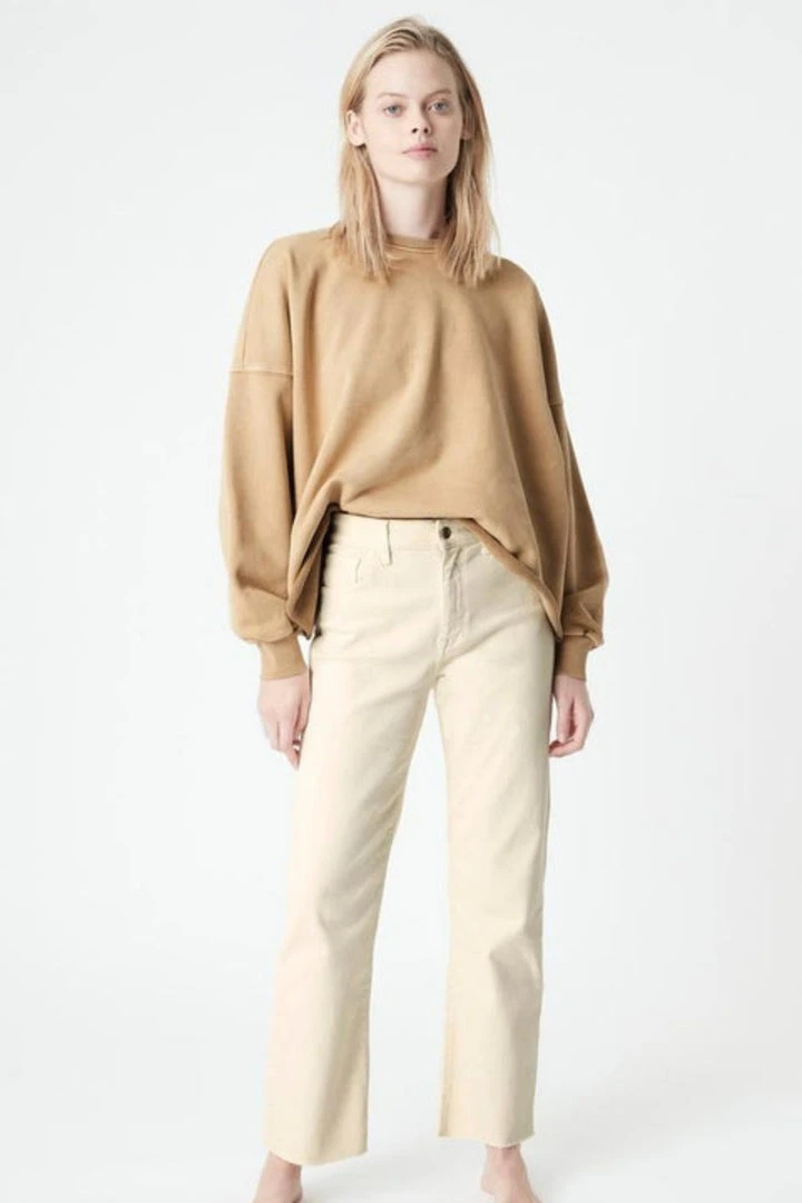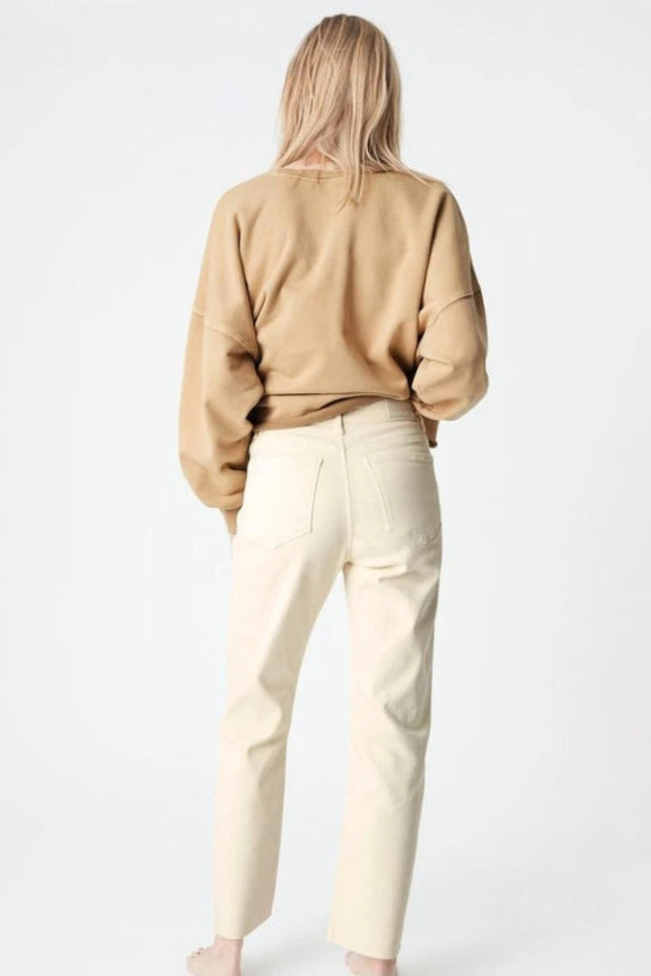 Warmer weather and sunny skies means bringing on the shades of light, bright denim. These striking wide leg jeans in an off-white wash have the optimistic, bold look and effortless fit that belongs in your closet this season.