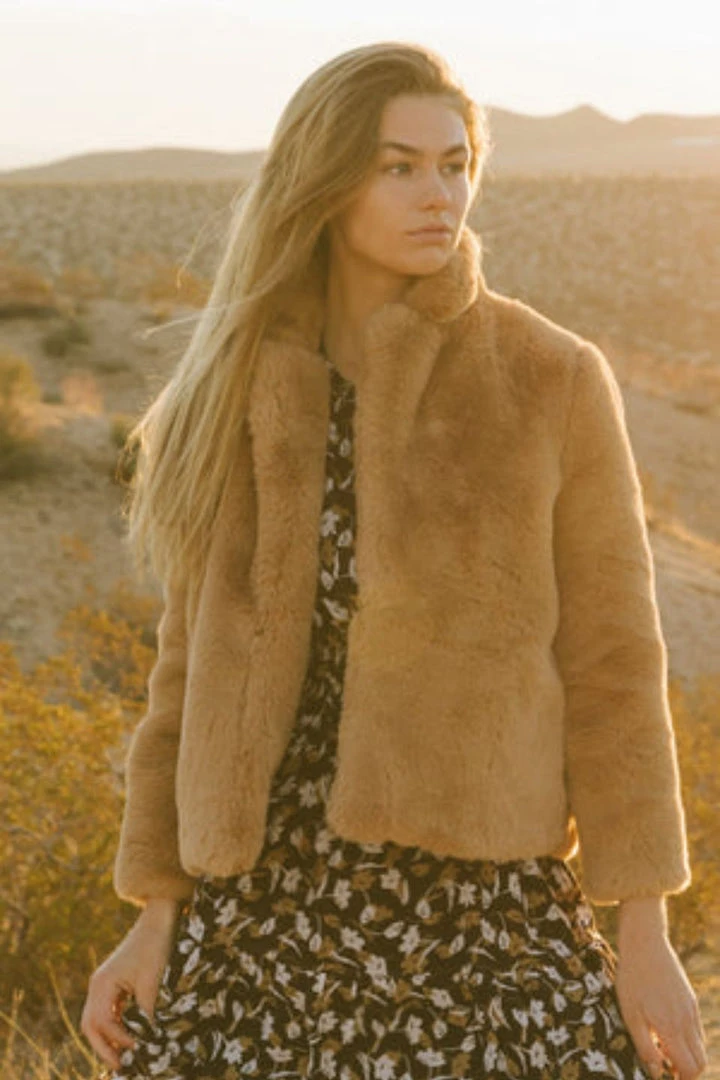 In a luxe faux fur fabrication, the Carmel Faux Fur Jacket will keep you warm and cosy this winter. Featuring pockets in the side seams and a slightly cropped length, in a gorgeous honey colour. Wear with jeans for a casual look or wear over dresses for a night out.
