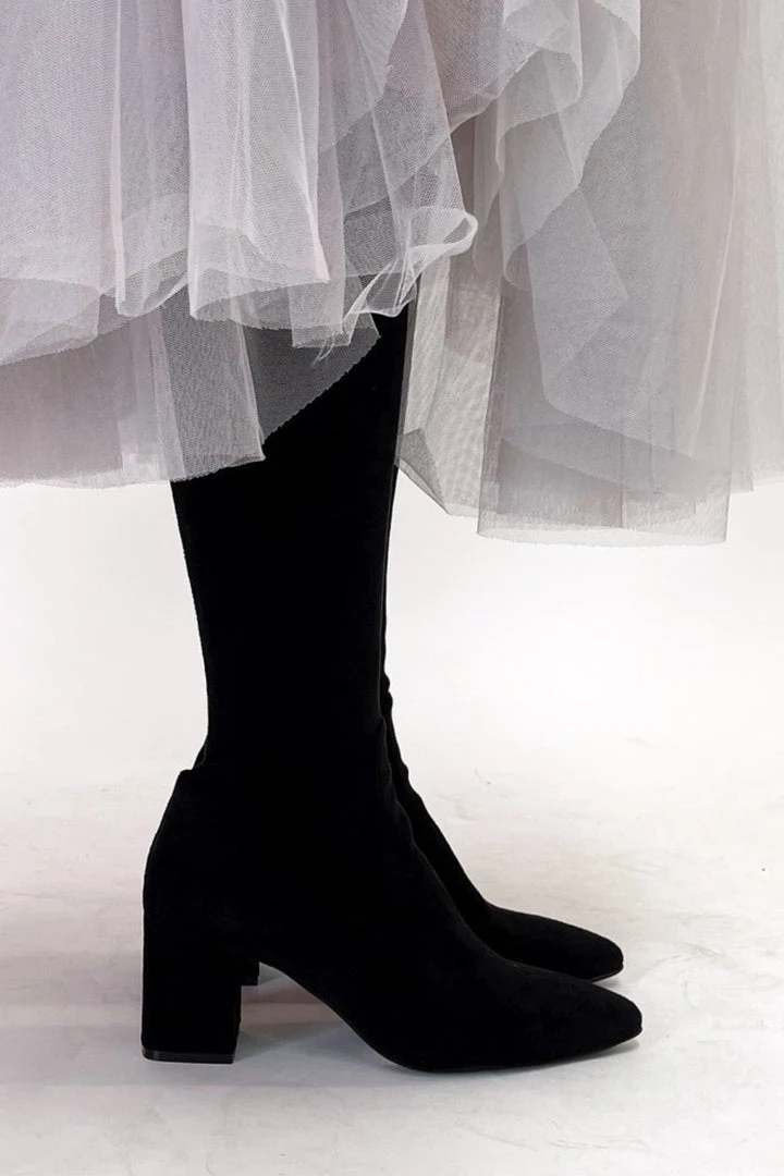 Point Pop is a stunning stretch micro-suede boot that sits perfectly around the calves. Point Pop Long sits just below the knee and features a pointed toe and an inner zip to take on and off with ease.