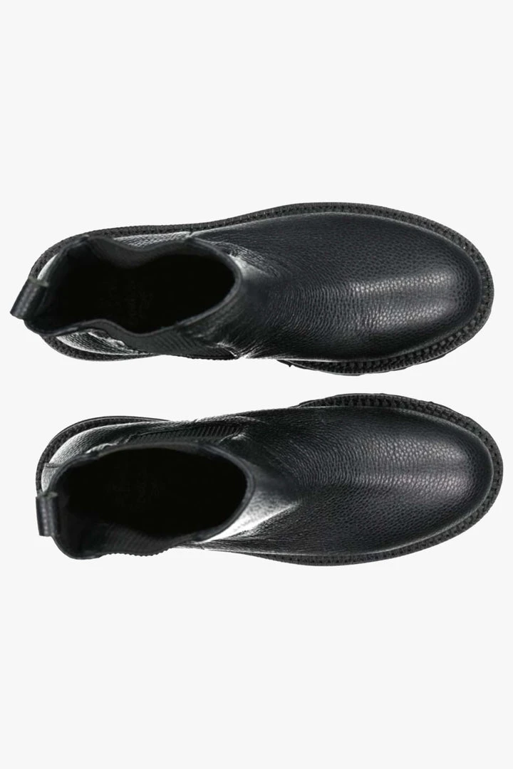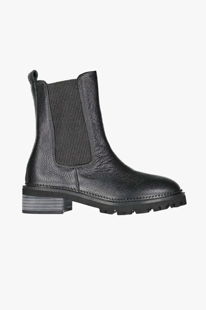 The perfect day to night low ankle boot with a stunning mix of milled and patent leather. Boundary features include a rubberized cleated sole, a leather back tab, an inner zip to get this boot on and off with ease and a beautiful rand detail around the toe.
