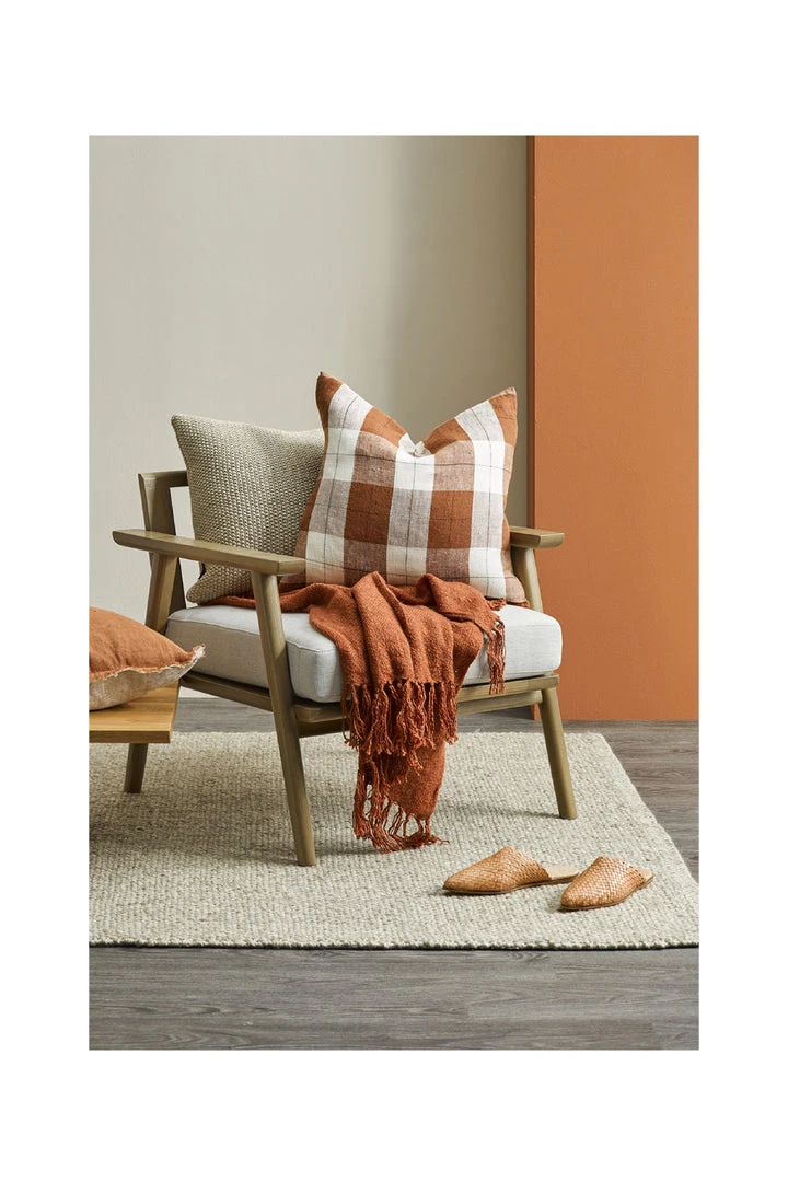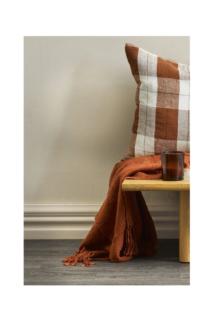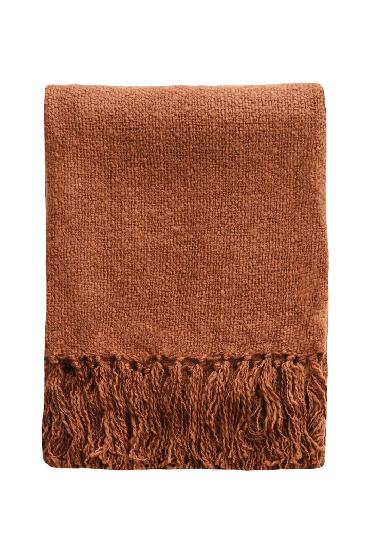 Woven from luxuriously soft brushed acrylic, this beautiful throw features a playful tasselled edge.