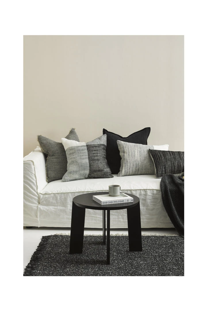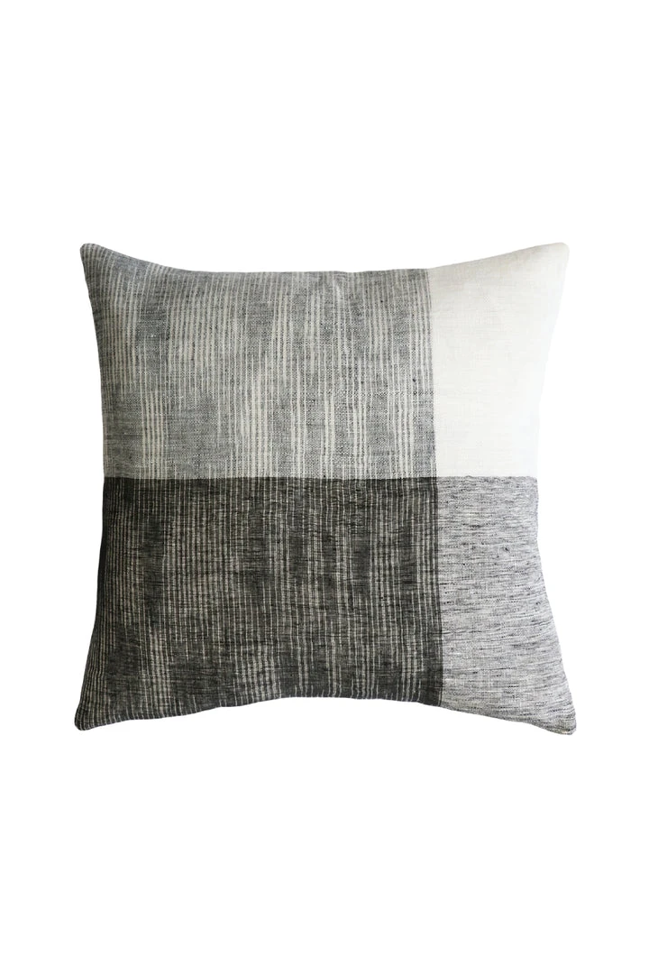 The Wilson is an artisanal woven cushion in a cool monochromatic palette. This double-sided design in 100% linen provides versatility for modern living spaces and a simple, textural aesthetic.
