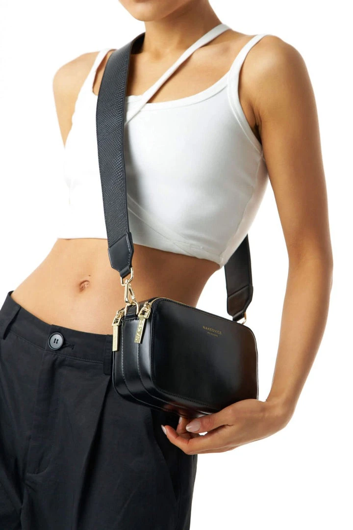 Meet the newest member of The Met squad, The Met Lizzie. The reversible strap features smooth black nappa leather on one side and a black texture on the other. The two zip closure compartments open up to a surprisingly spacious interior, large enough to stow away your essentials. Wear yours crossbody with neutral tones and let the gold hardware be the statement.