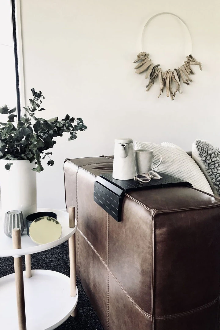 NED Collections Support Local Gifts Arm Chair Side Rest Black Wood Slats