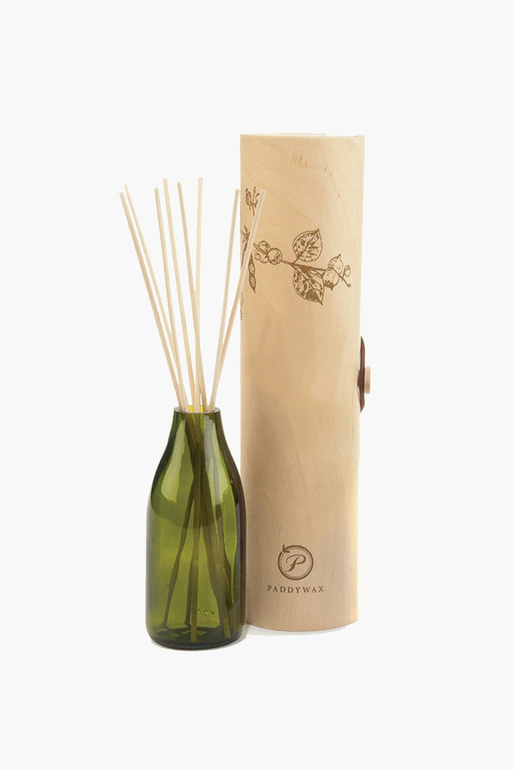 Made from natural fragrance oils and botanical extracts of flowers these beautiful Paddywax Eco Green diffusers are made from recycled green bottles and are presented in a stylish, wooden, veneer tube.