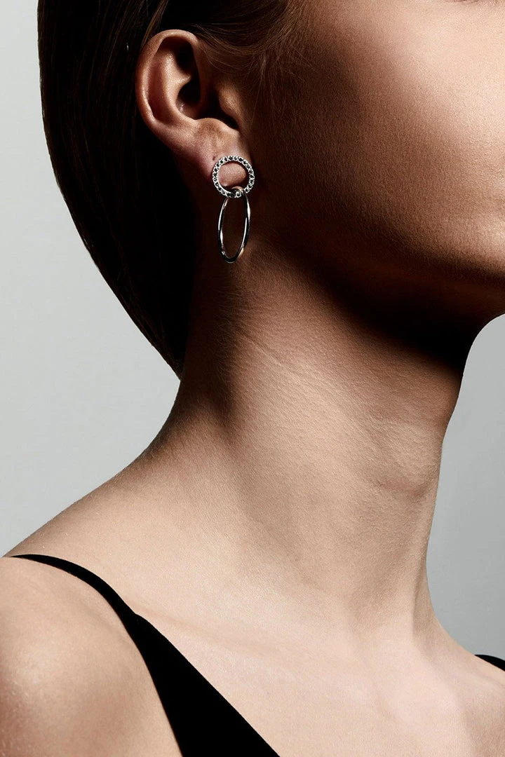 Two composite rings characterise the unique design, and it gives the silver-plated earrings a contemporary look. One ring is adorned with Preciosa crystals, which adds an exclusive and elegant touch. The unique contrast of the rings means that the earrings are not just simple hoops but something very special and ornate.