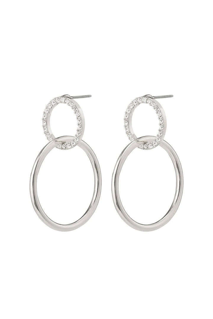 Pilgrim Accessories Garcelle Double Circle Silver Plated Stud Earrings With Crystals