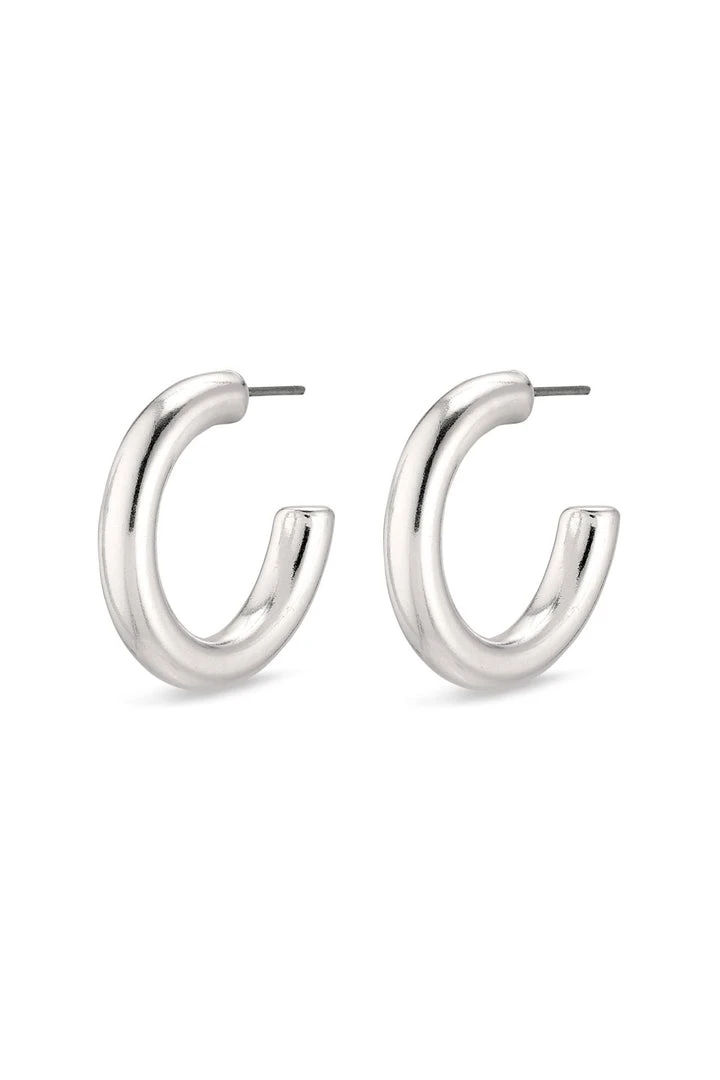Elegant, classic hoops with chunky polished silver-plated rings. These hoops are available in three sizes so you can find the exact size to match your personal look. You might want to have these smaller earrings as well as the oversized statement earrings, so you can vary your look according to your mood.