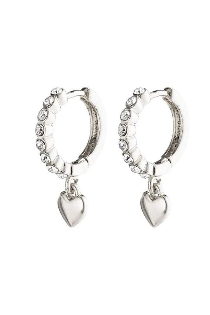 Pilgrim Accessories Sophia Preciosa Crystals And Heart Pendant Silver Sleeper Earrings