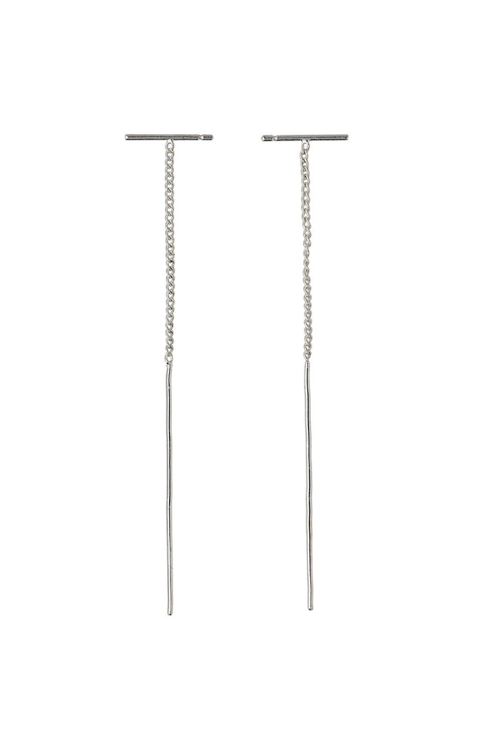 Great and versatile thread chain pull through earrings. Half stick, half chain featuring a round bar. You can wear these in a number of ways. And you can wear them alone for a more minimalist look or mix and match with other pieces for a mismatched look. These earrings are gold or silver plated.