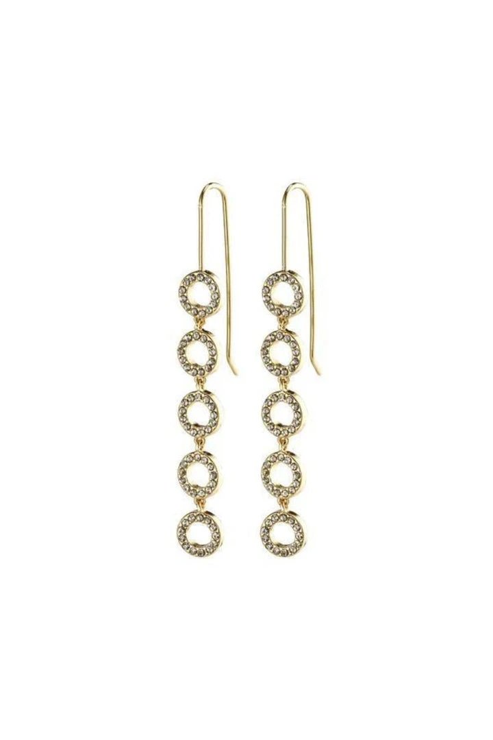Pilgrim Tessa Preciosa Crystals On Linked Hanging Small Gold Circles Hook Earrings