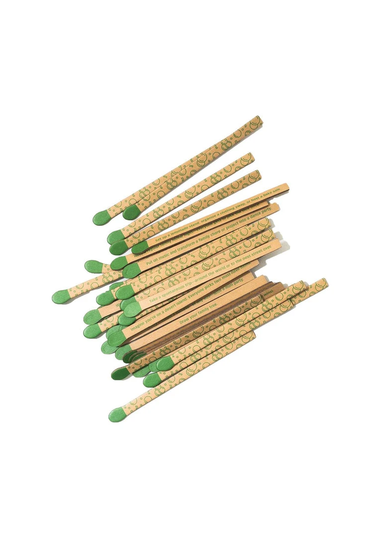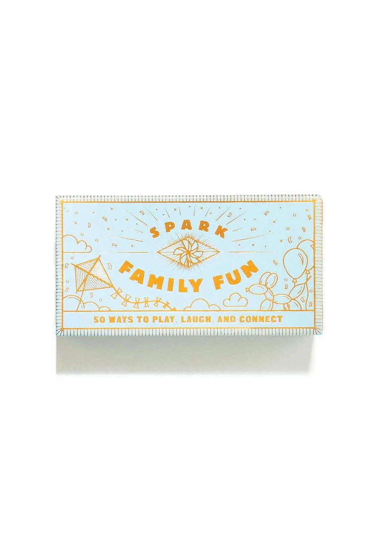 Light a spark of inspiration! Designed to look like a matchbox, this box of 50 faux matchsticks offers activities to spark play, connection, and fun for the whole family. Sample prompts: Put on music and transform a family chore or project into a dance party. Share funny stories about the most hilarious things that happened this month.