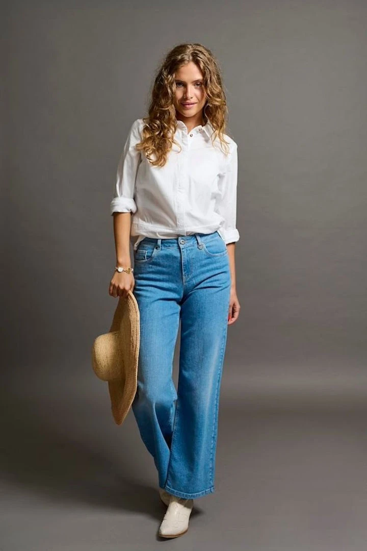 The perfect high waisted wide leg denim jeans have landed. Introducing the Emma jeans from Pulz denim. These jeans will become your new everyday favoruites.
