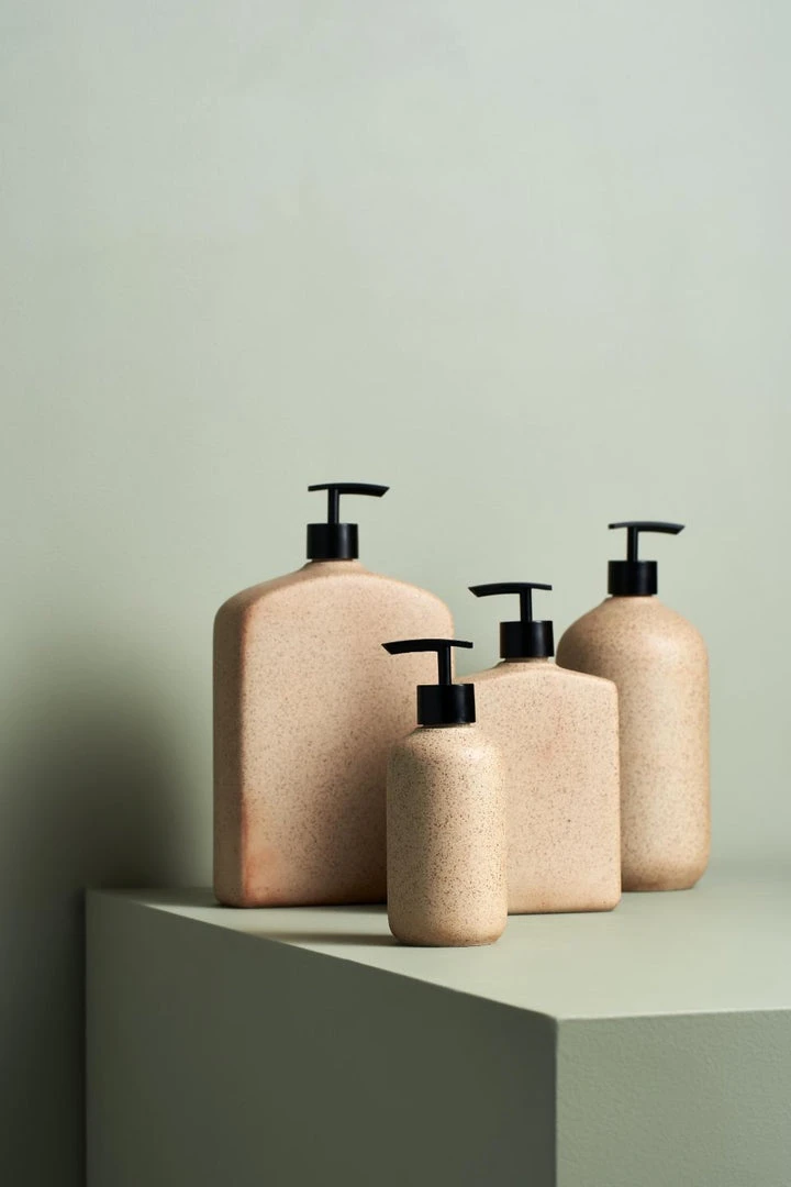 – High fired stoneware bottle with a plastic pump