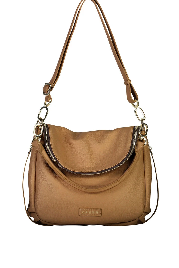 Everyone’s favourite and oh-so functional Frankie! A slouchy shoulder bag, constructed in beautiful pebbled textured leather. The satchel flap opens with an up-sized chunky zip to an entirely separate compartment. Frankie features a tubular top handle, plus a long detachable and adjustable shoulder strap with gold plated hardware. She is the perfect partner from Monday to fun-day. Use the pockets-a-plenty to organise your life.