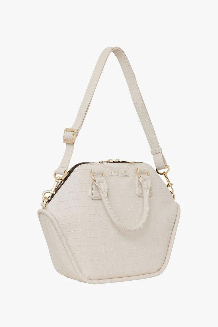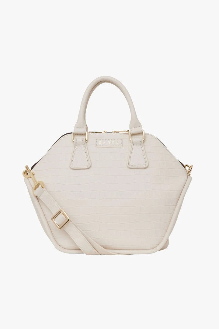 The Liv Leather hand Bag in Croc-embossed leather detail has pebbled textured leather body, top handles and the adjustable and detachable cross-body strap offer multiple ways to wear. Finished with signature pale gold hardware, zip-top closure and poly-nylon lining for easy care.