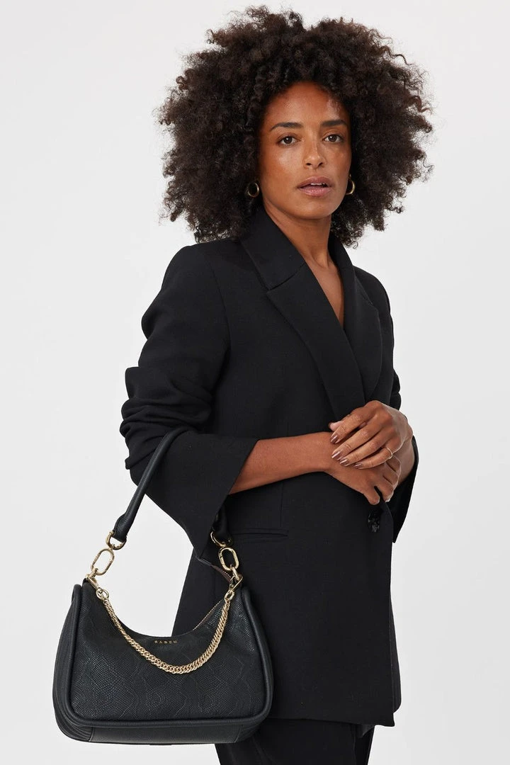 Odette is the perfect quick fix to every outfit in need of a finishing touch. An understated mid-sized style which boasts practical luxury. Constructed with oversized piping detail easy zip-top entry, a shoulder handle and feature chain handle, for added bling. Ooo now thats fancy! Sometimes we just need to level up, but if youre feeling smug – we love Odette paired with our more causal, canvas feature handles too.
