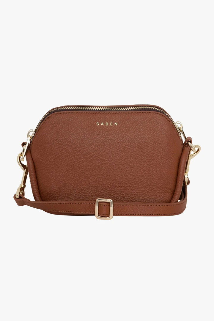 – Gold plated hardware; interior secure zip pocket; zip closure.