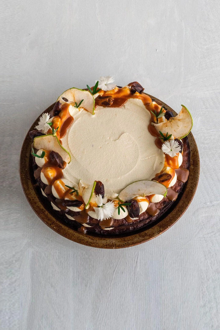 This is an ever popular cake on the Sage + Grace cake menu! Beautifully soft cake with seasonal fruit of your choice, Sage + Grace recommend pears, feijoas, and apples but you could use anything you love with sticky date. Or even leave the fruit out! It has warming spices and is perfect served warm as a pudding or cooled and iced as a cake. As the cooler evening are apon us it is a wonderful evening treat.