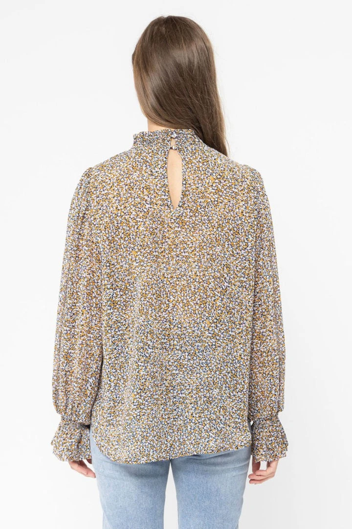 Seeking Lola Fashion Walk This Way Caramel Floral LS Shirred Top