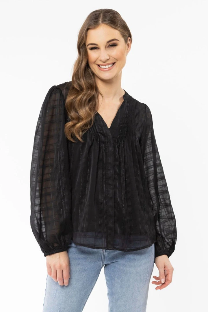 Seeking Lola Fashion Wholesome Black Lurex Button Down Shirt