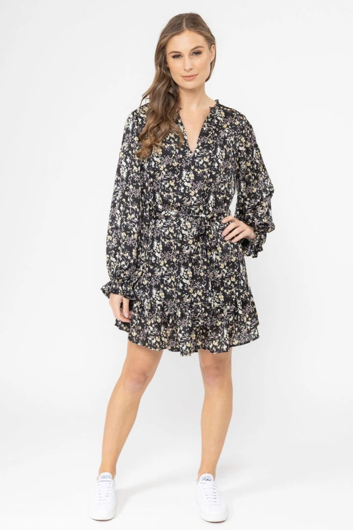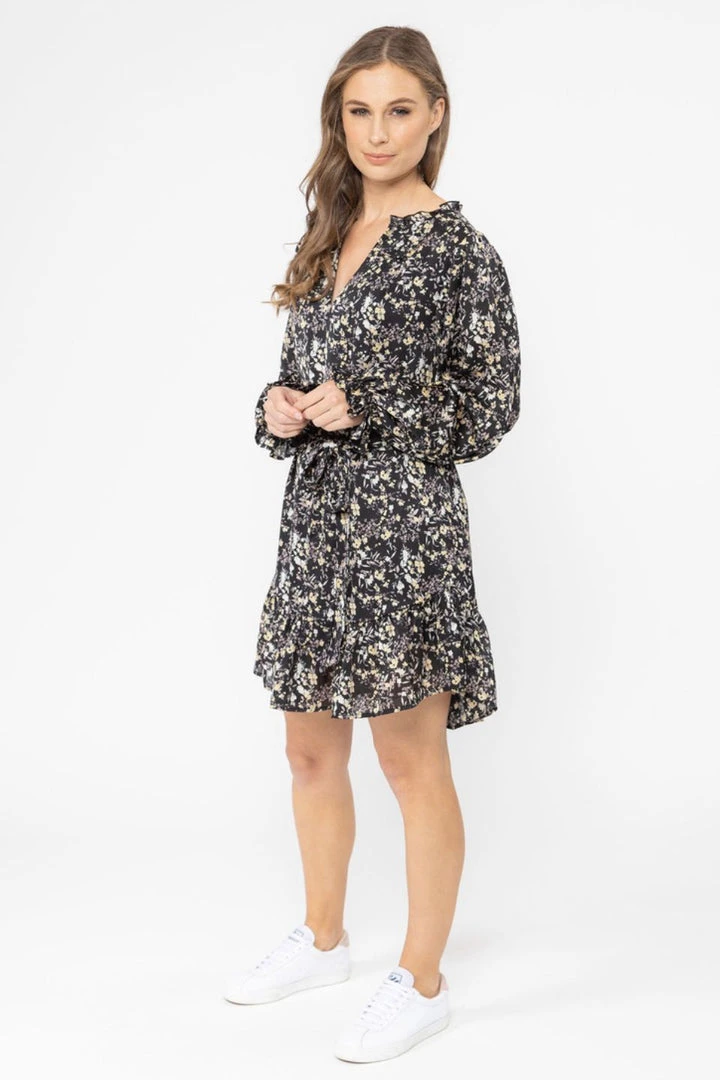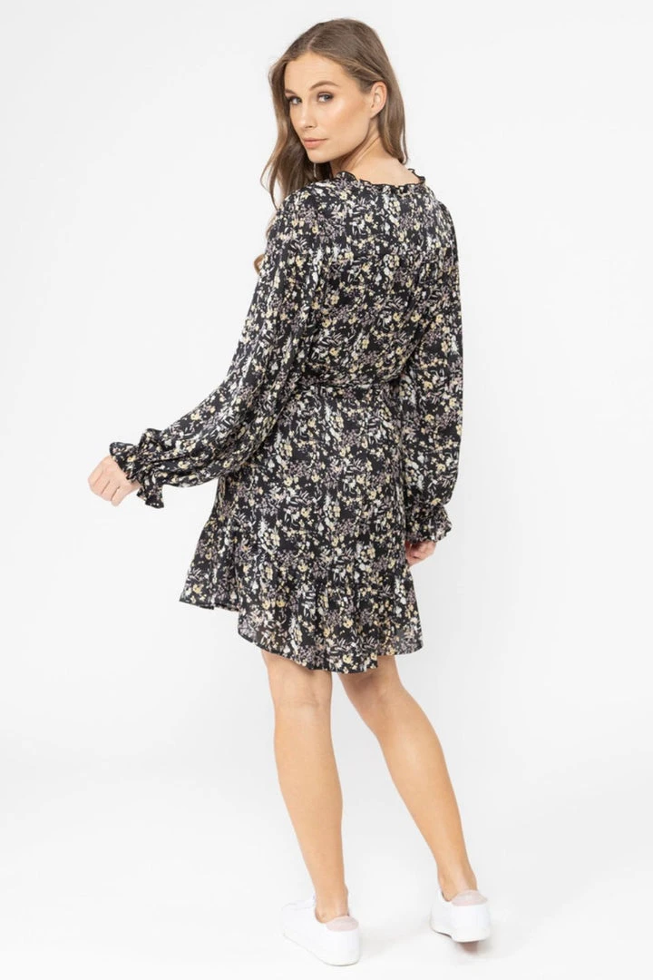 Seeking Lola Inspire Black Floral LS Frill Hem Shift Dress