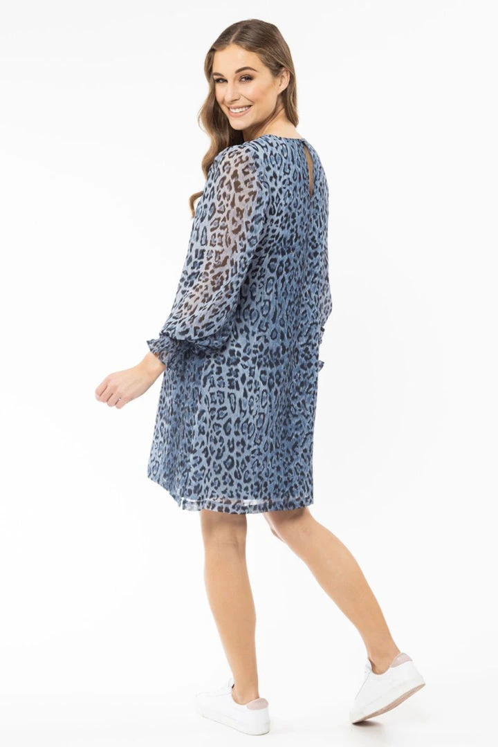 Seeking Lola Wanderer Blue Animal LS Shift Dress Fashion