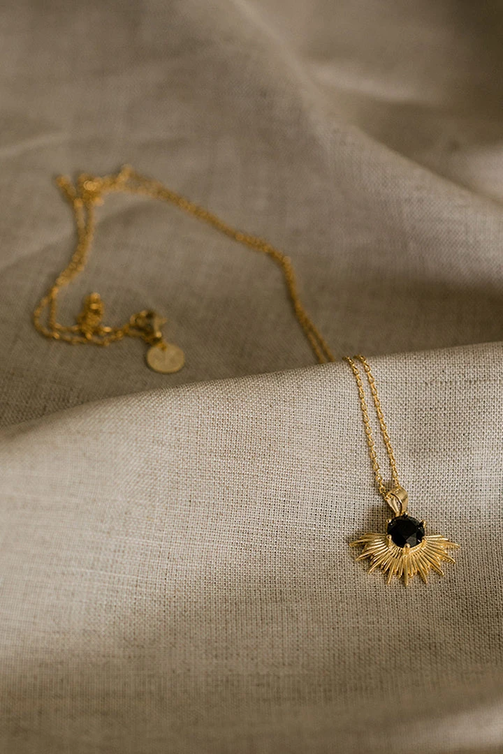Make a real fashion statement with the Solace Necklace. The Solace Necklace features an intricate, detailed Andradite Garnet gemstone as its centrepiece, making it the perfect combination of modern simplistic and bold. The Andradite Garnet is a stone of higher thinking and self-empowerment, making it a special piece for any occasion. Pair this up with the gorgeous matching Solace earrings to complete the look.Â