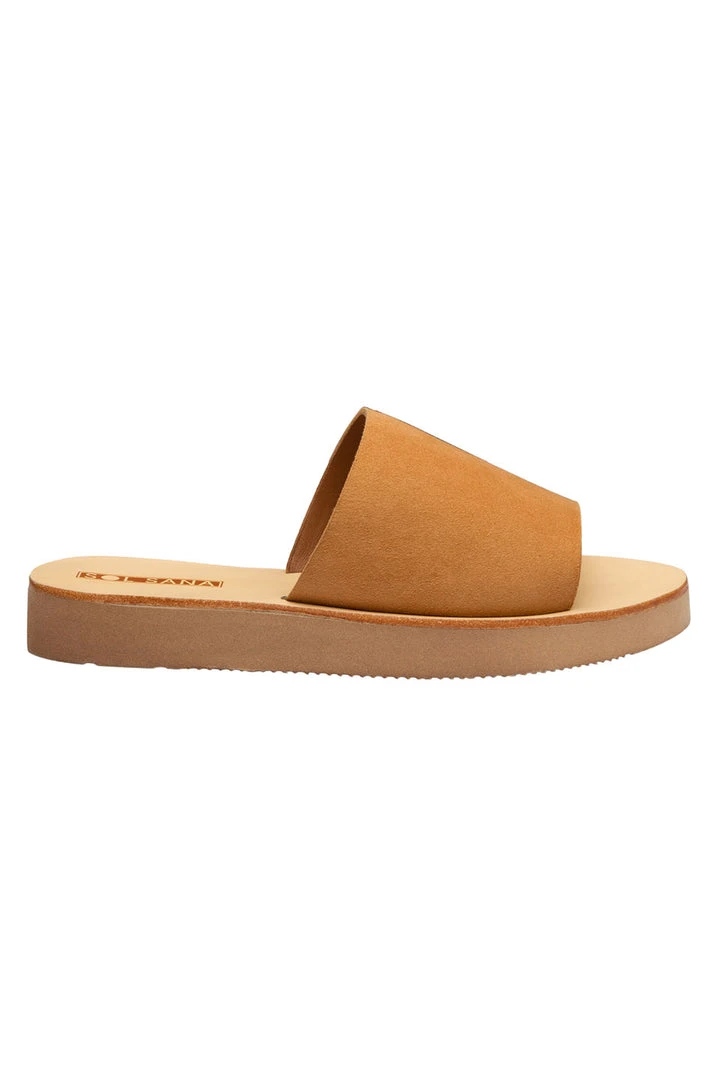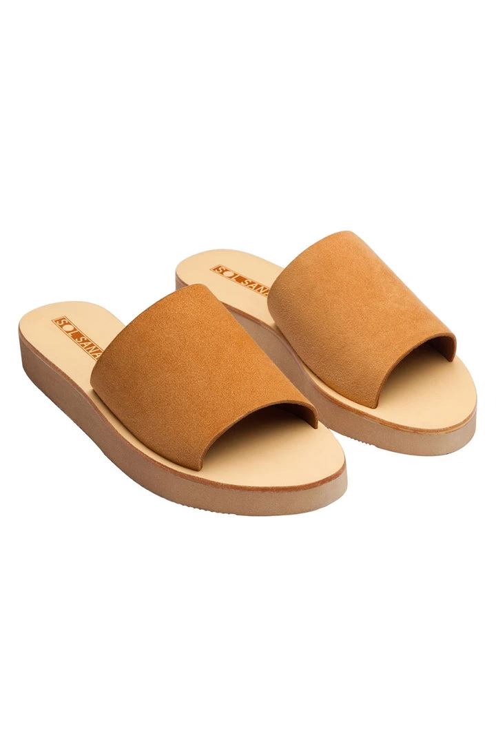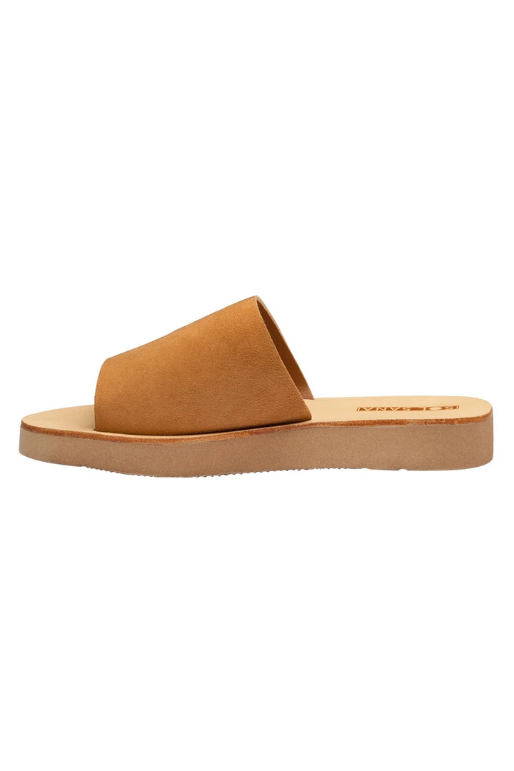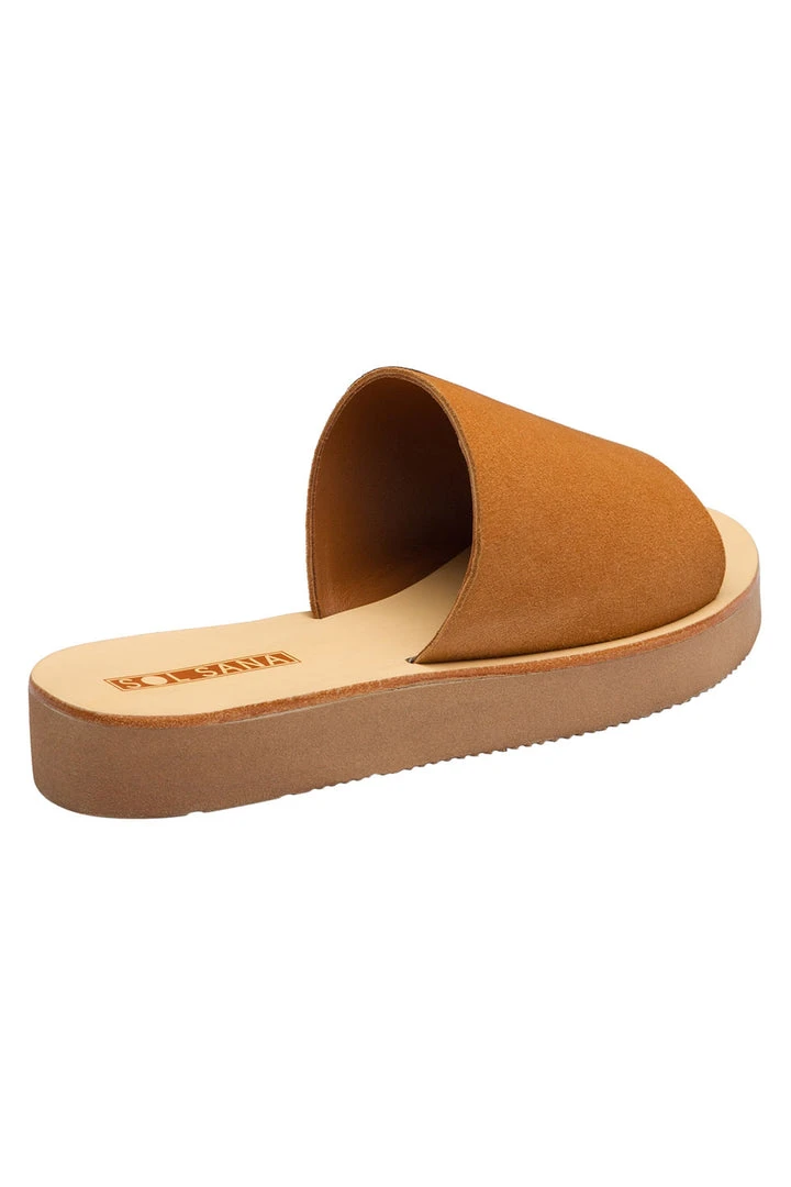 A literal elevation of the essential summer slide, the Tara is finished with a thick band made from soft, toffee suede.