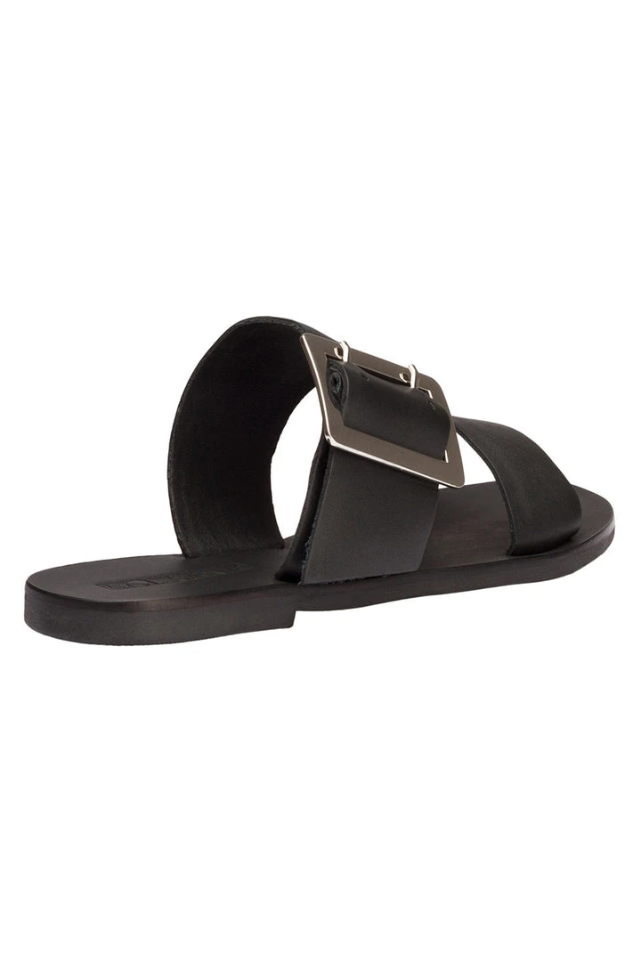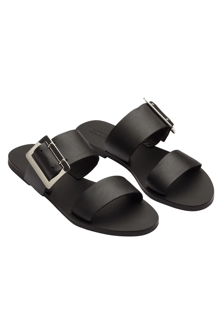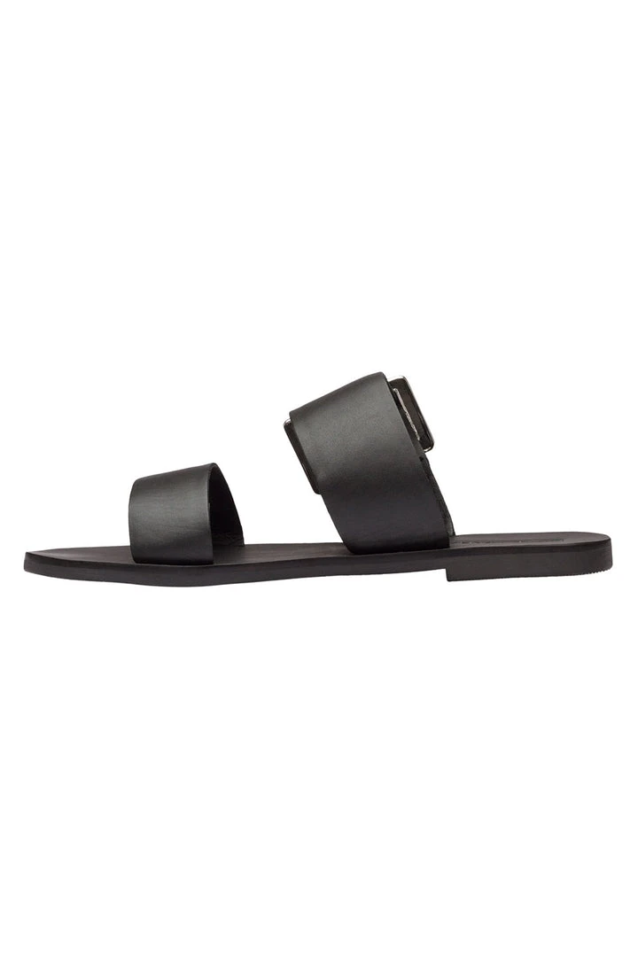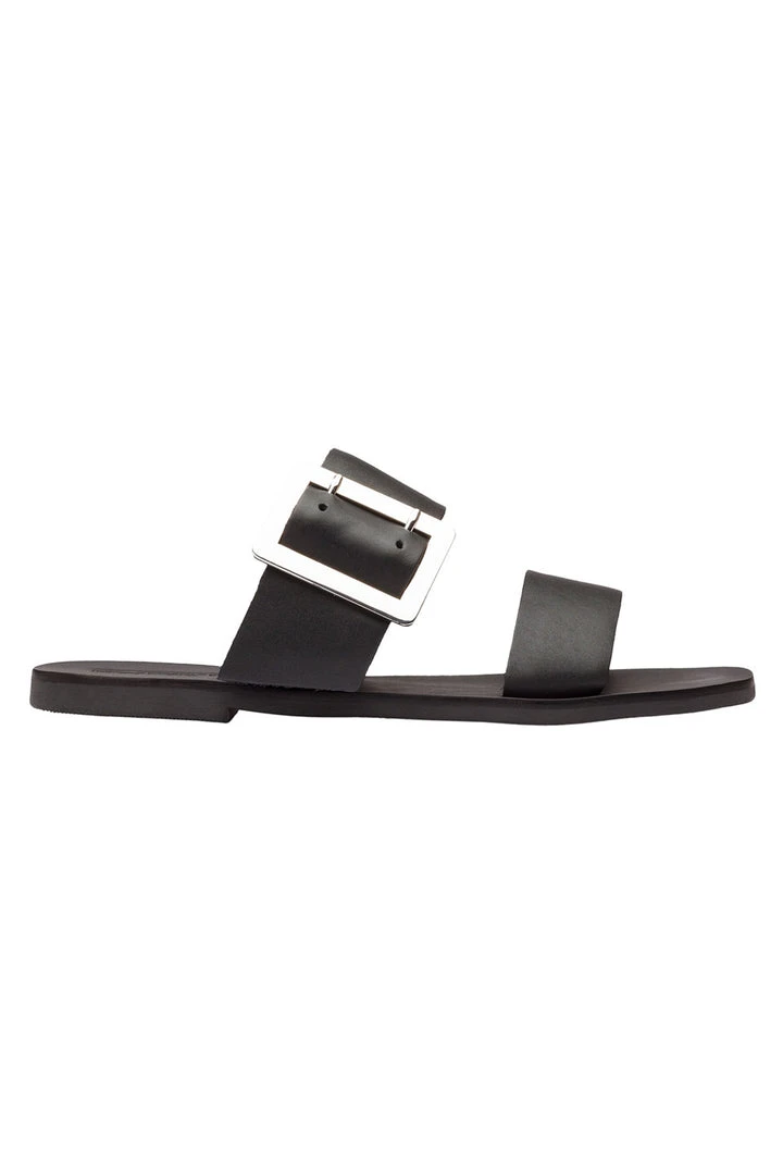 The classic April slide by Sol Sana gets an on trend update with a statement buckle and two thick straps that wrap the front of the foot. A gently rounded toe adds the finishing touch to this versatile style.