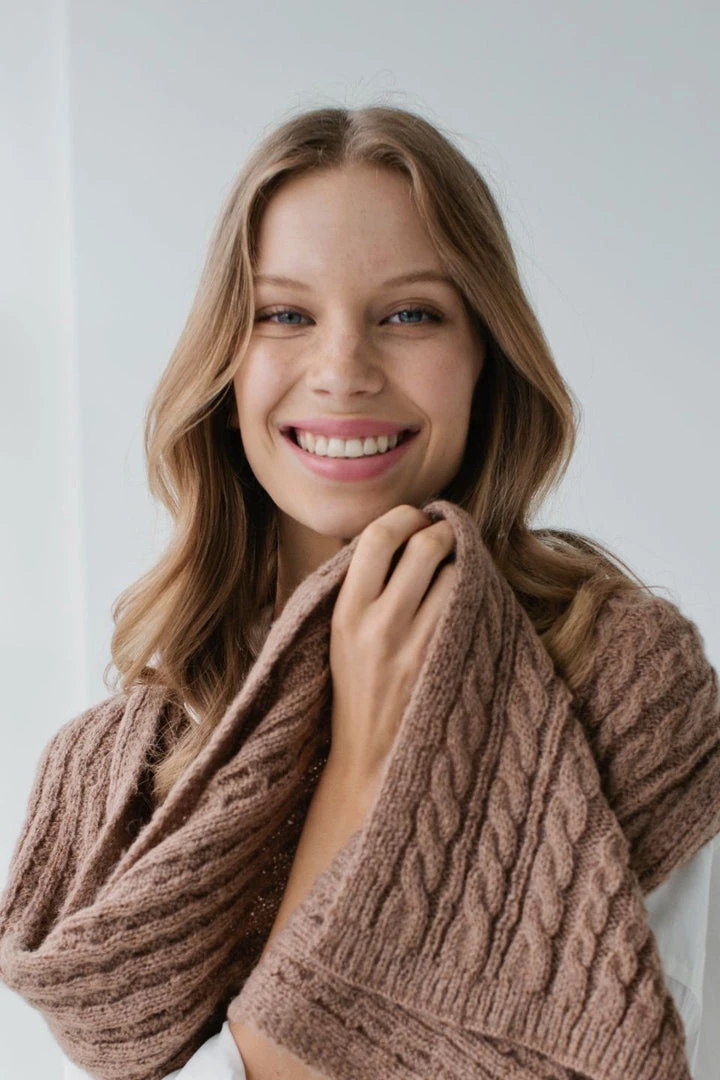 This chunky wool & mohair blend cable knit scarf is so cosy.