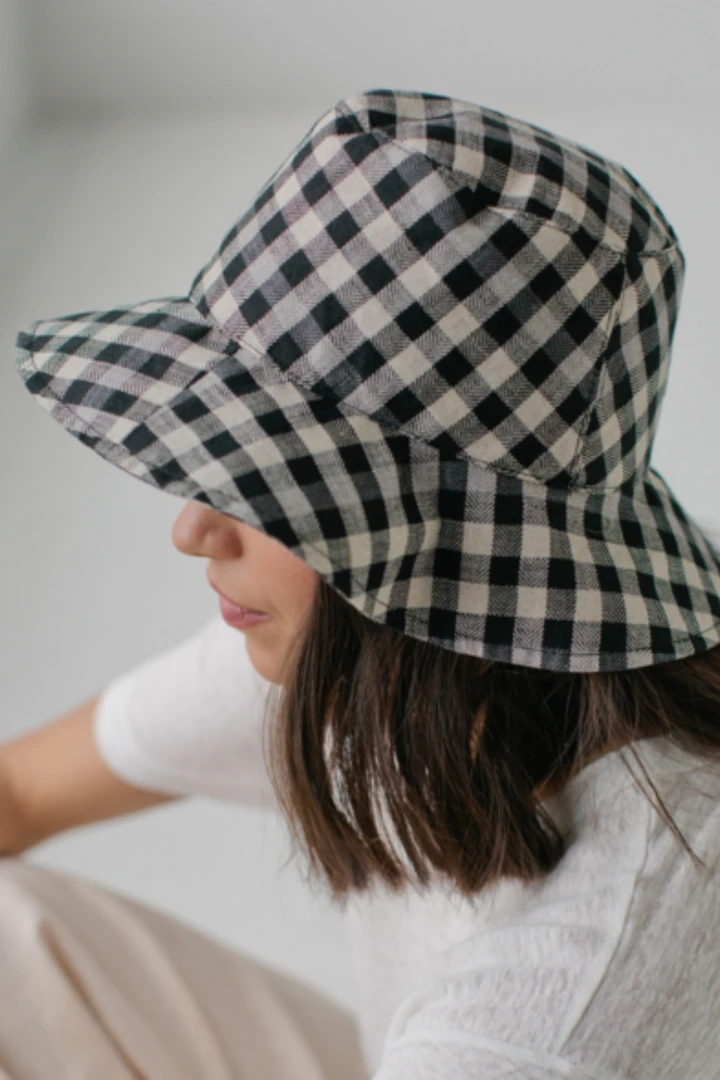 Simple linen bucket hat. Looks good & sun-safe too.Â