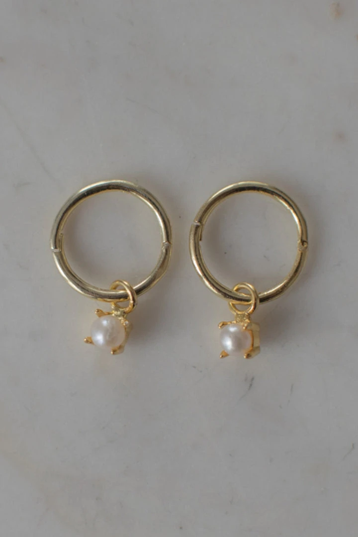 Simple mini pearl sleepers. Super sweet on their own, even better layered with other earrings.