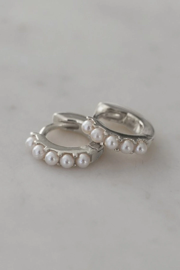 Delicate little huggies, made up of mini pearls. Super sweet on their own, even better layered with other earrings.