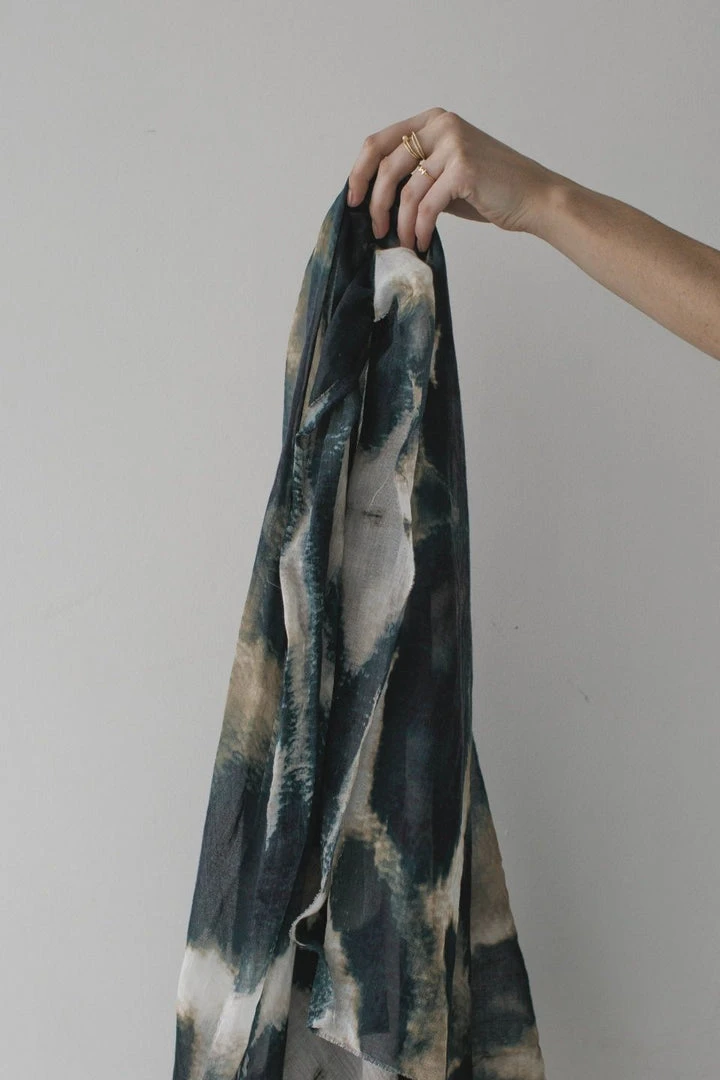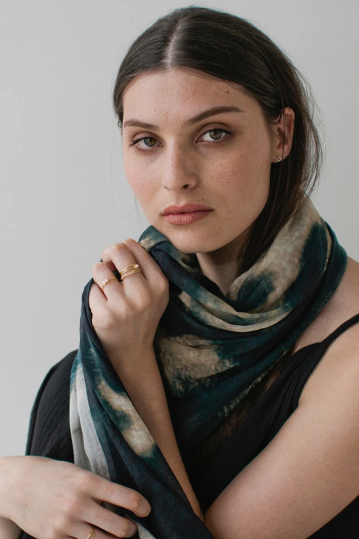 Earthy tones combine with dark charcoal & black to create softness in this timeless print. The Mirage maxi scarf by Sophie works with all your basics and is handy as a wrap at the beach too.