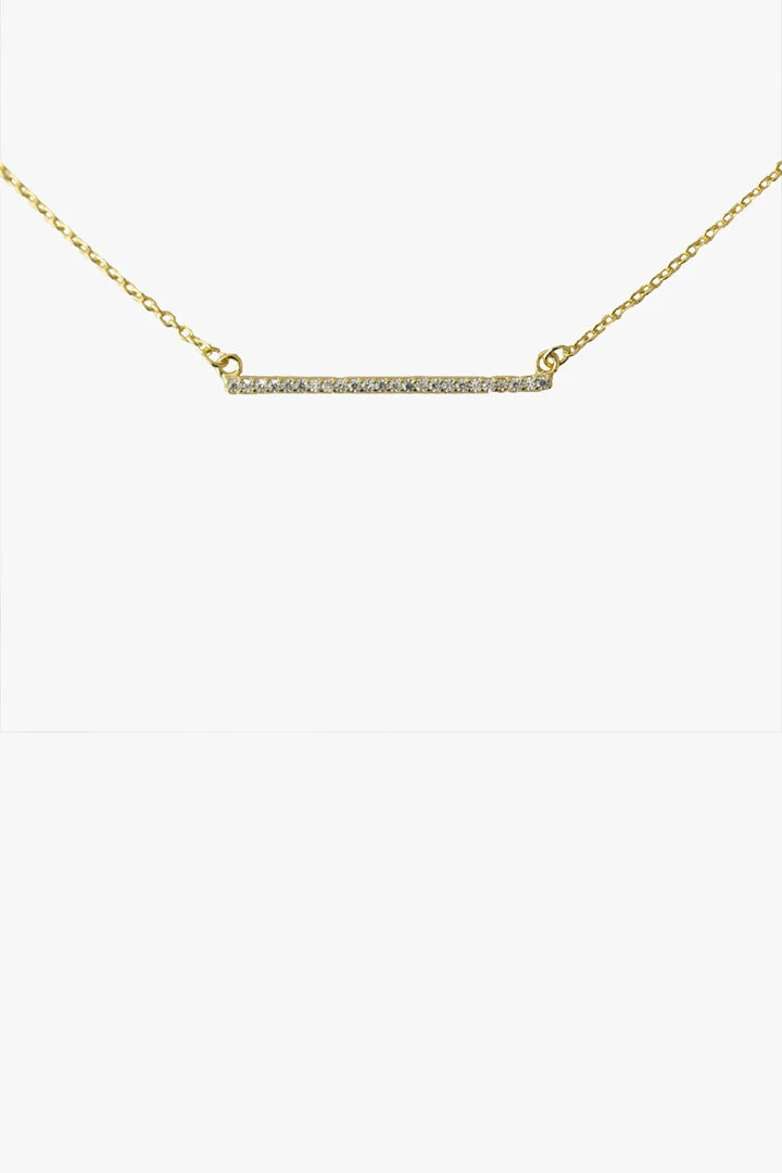 Our mini-bar necklace, with sparkles. This fine bar is set with zircons, a sweet layering piece.