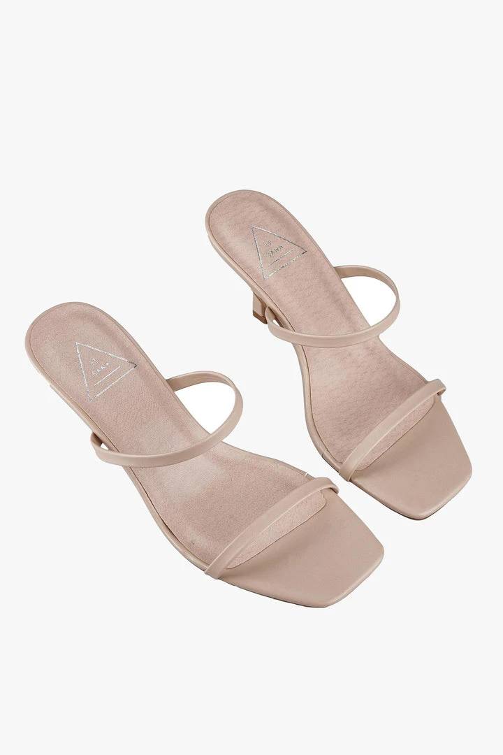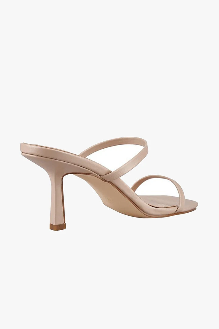 The Jamie mule is the ultimate finish to an evening look. Barely there blush straps wrap the foot while a fluted heel and square toe lend a heavy dose of attitude.