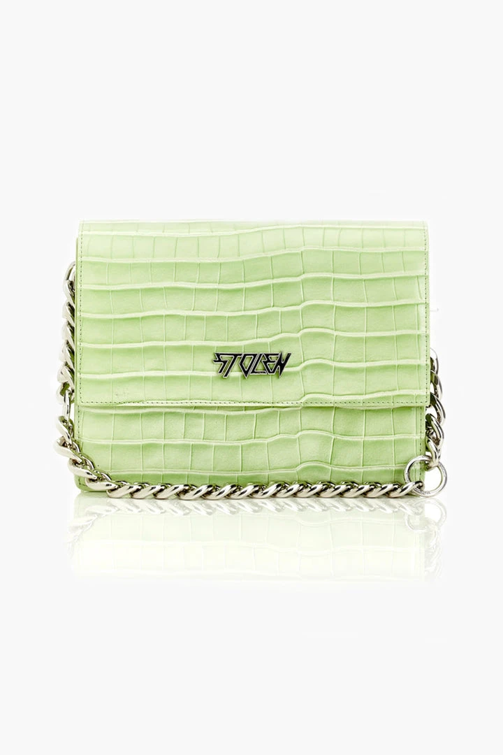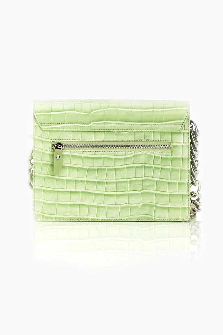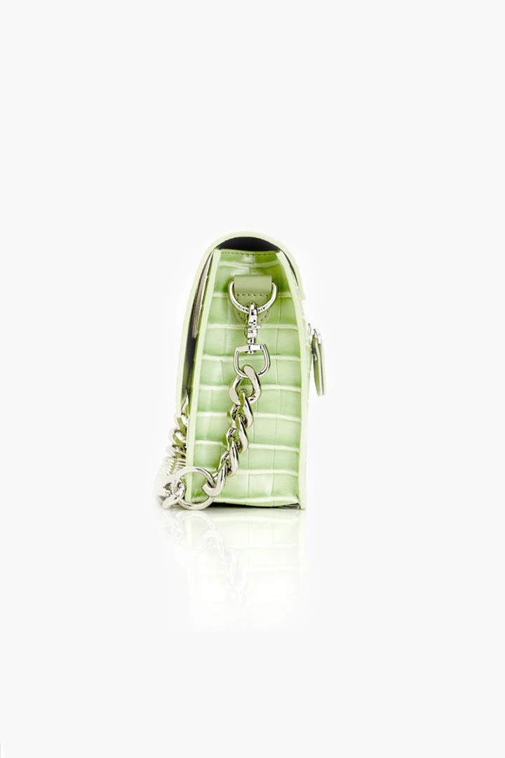 Designed with sharp corners, cleaner lines, and angular features, this style has more structure and feels almost architectural. Beautifully crafted in rich crocodile-effect texture, this has a modernized high-sheen leather and chunky silver hardware.