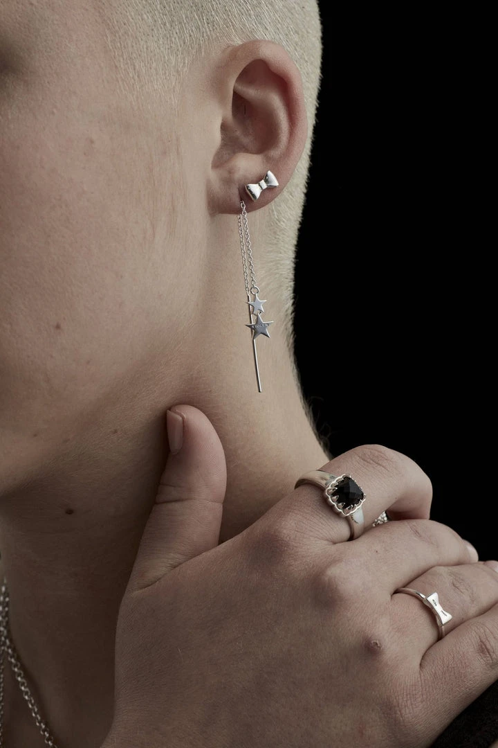 – Falling Stolen Star earrings crafted in high polished sterling silverÂ