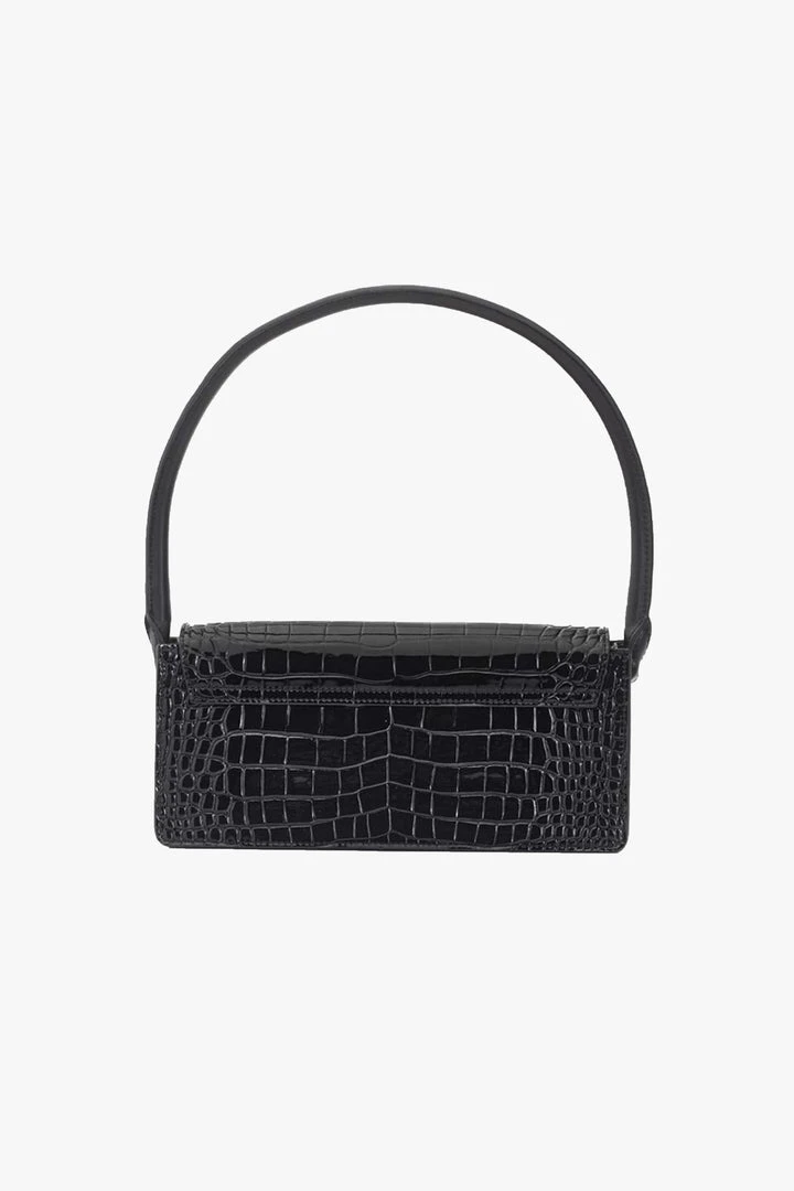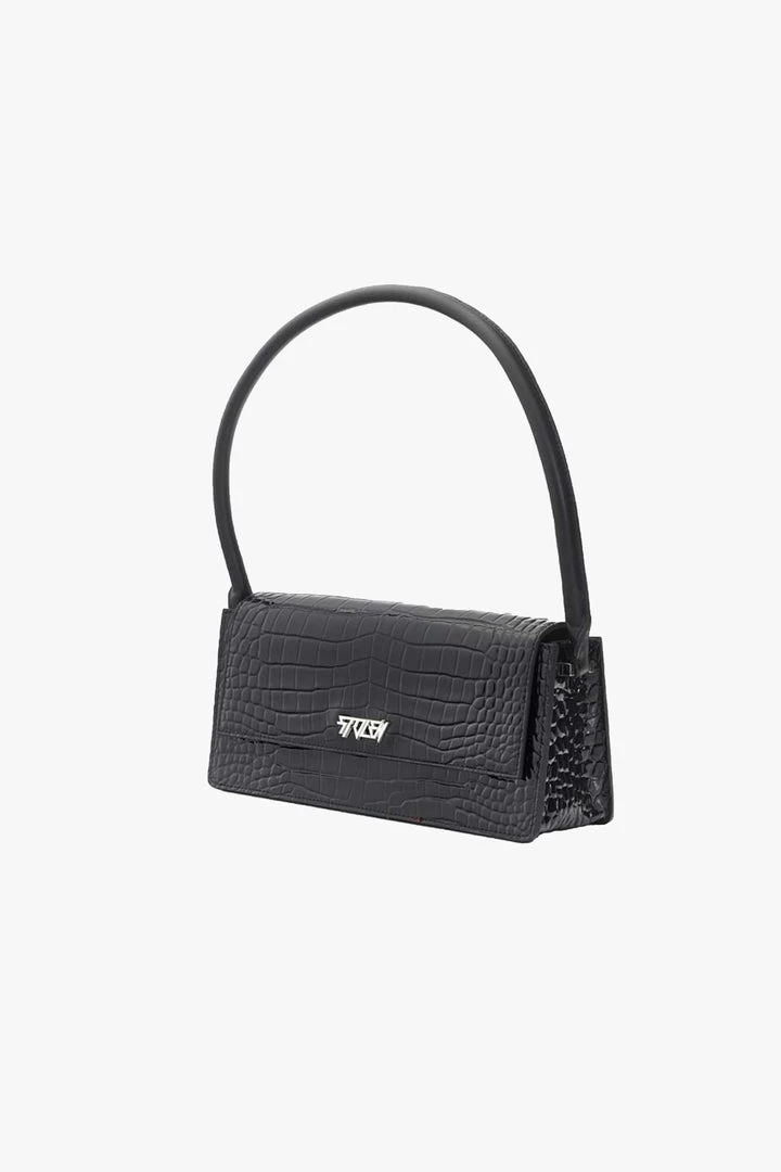 Designed with sharp corners, cleaner lines, and angular features, this style has more structure and feels almost architectural. Beautifully crafted in rich crocodile-effect texture this is made to be worn in the day or into the night and has a modernized high-sheen leather exterior. Â