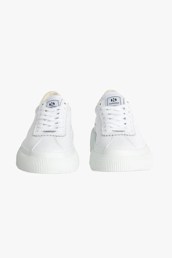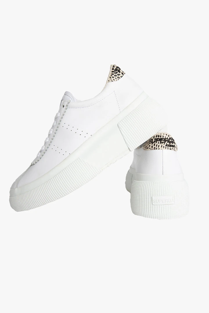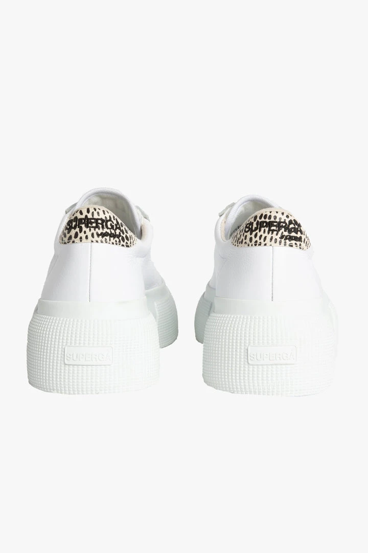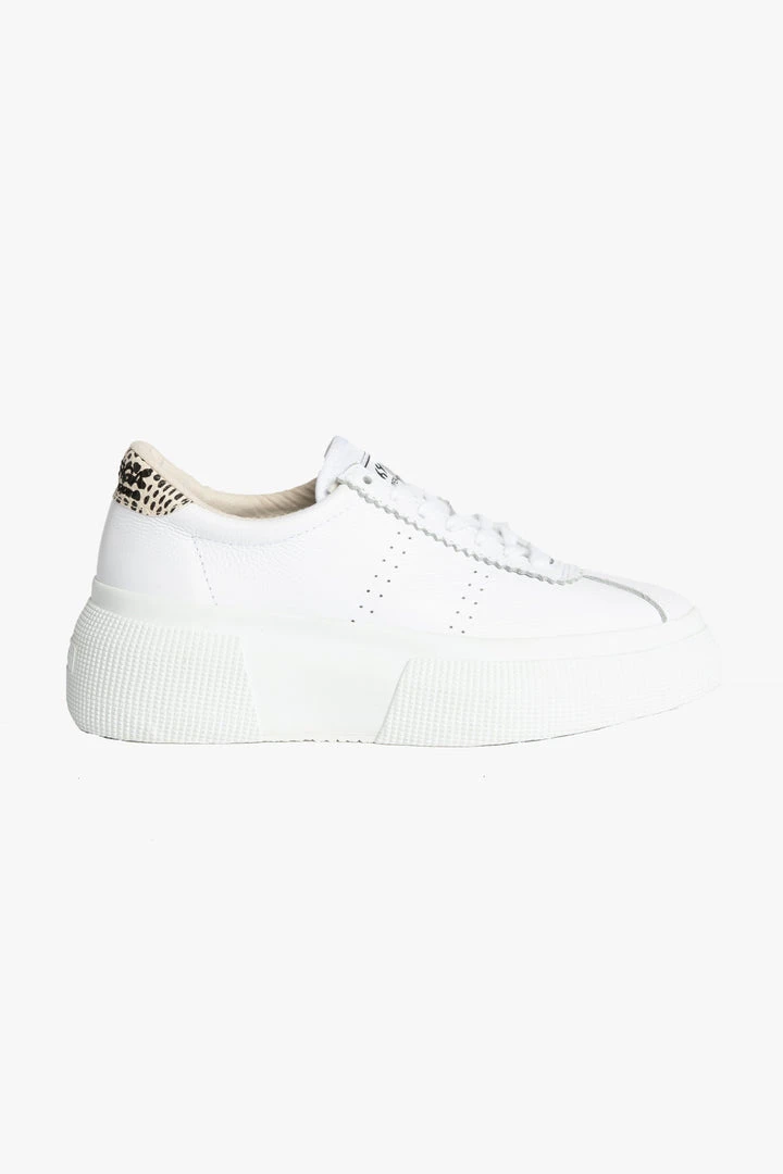 Club 5 with upper in comfort leather and back spoiler in synthetic printed leather; lining in cotton and raised sole in vulcanized natural rubber.